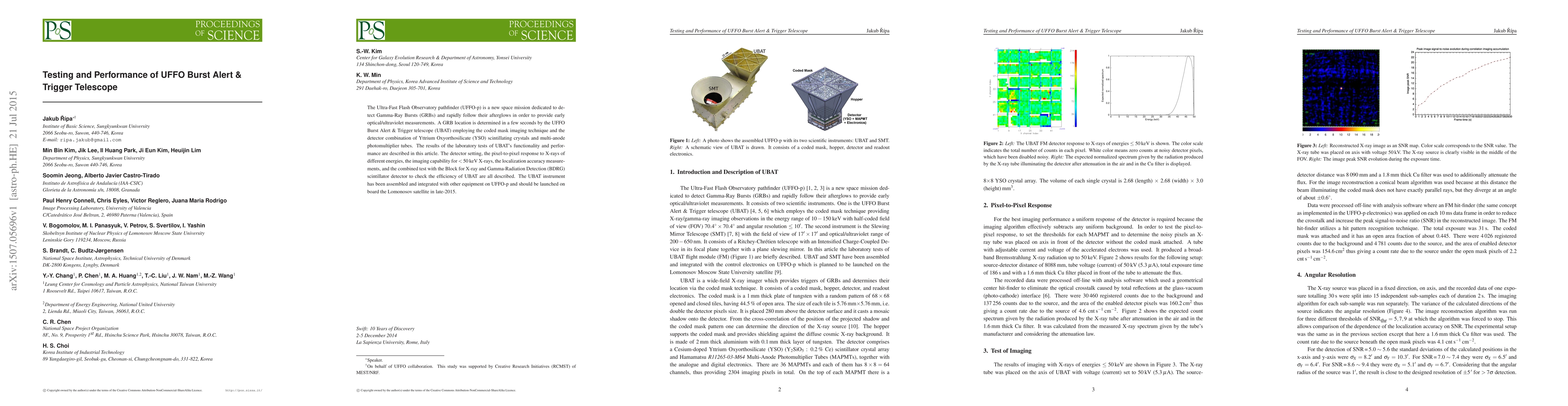This paper details the laboratory tests and performance of the UFFO Burst Alert & Trigger Telescope (UBAT), designed to detect Gamma-Ray Bursts (GRBs) and their afterglows. The UBAT employs coded mask imaging and Yttrium Oxyorthosilicate scintillating crystals for accurate localization and detection of <50 keV X-rays.