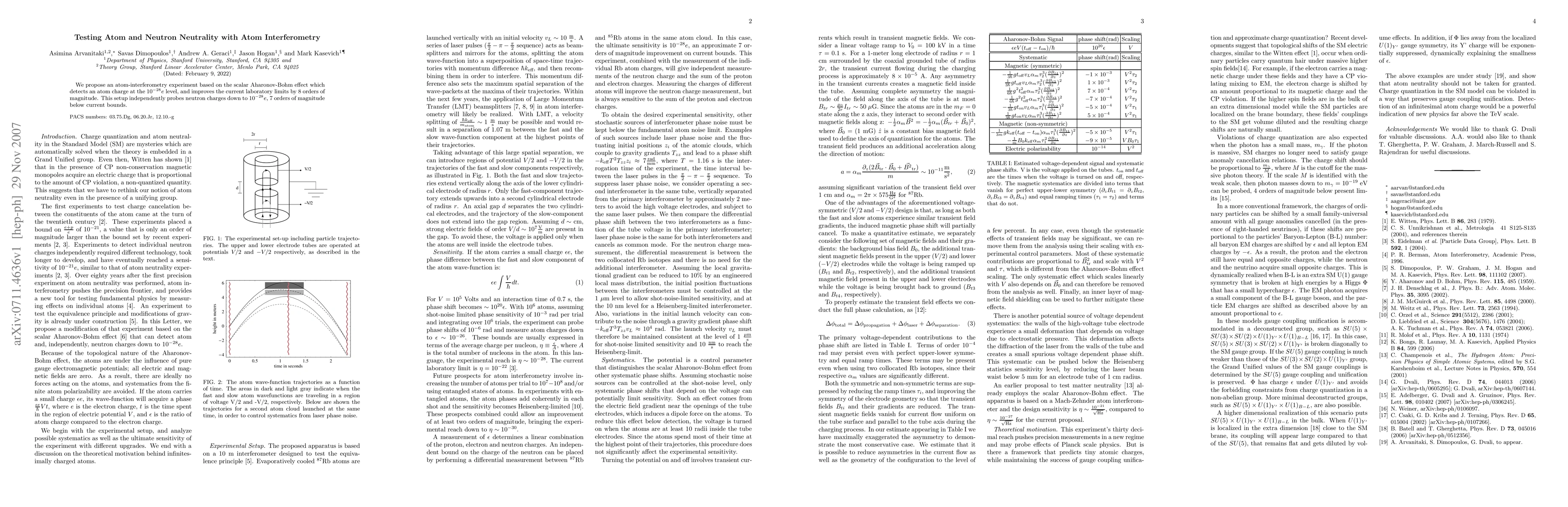We propose an atom-interferometry experiment based on the scalar Aharonov-Bohm effect which detects an atom charge at the 10^{-28}e level, and improves the current laboratory limits by 8 orders of magnitude. This setup independently probes neutron charges down to 10^{-28}e, 7 orders of magnitude below current bounds.