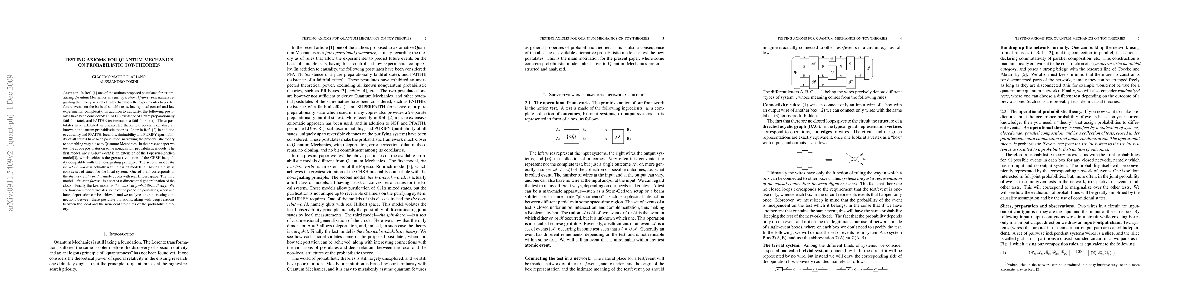 In Ref. [1] one of the authors proposed postulates for axiomatizing Quantum Mechanics as a "fair operational framework", namely regarding the theory as a set of rules that allow the experimenter to predict future events on the basis of suitable tests, having local control and low experimental complexity. In addition to causality, the following postulates have been considered: PFAITH (existence of a pure preparationally faithful state), and FAITHE (existence of a faithful effect). These postulates have exhibited an unexpected theoretical power, excluding all known nonquantum probabilistic theories. Later in Ref. [2] in addition to causality and PFAITH, postulate LDISCR (local discriminability) and PURIFY (purifiability of all states) have been considered, narrowing the probabilistic theory to something very close to Quantum Mechanics. In the present paper we test the above postulates on some nonquantum probabilistic models. The first model, "the two-box world" is an extension of the Popescu-Rohrlich model, which achieves the greatest violation of the CHSH inequality compatible with the no-signaling principle. The second model "the two-clock world" is actually a full class of models, all having a disk as convex set of states for the local system. One of them corresponds to the "the two-rebit world", namely qubits with real Hilbert space. The third model--"the spin-factor"--is a sort of n-dimensional generalization of the clock. Finally the last model is "the classical probabilistic theory". We see how each model violates some of the proposed postulates, when and how teleportation can be achieved, and we analyze other interesting connections between these postulate violations, along with deep relations between the local and the non-local structures of the probabilistic theory.