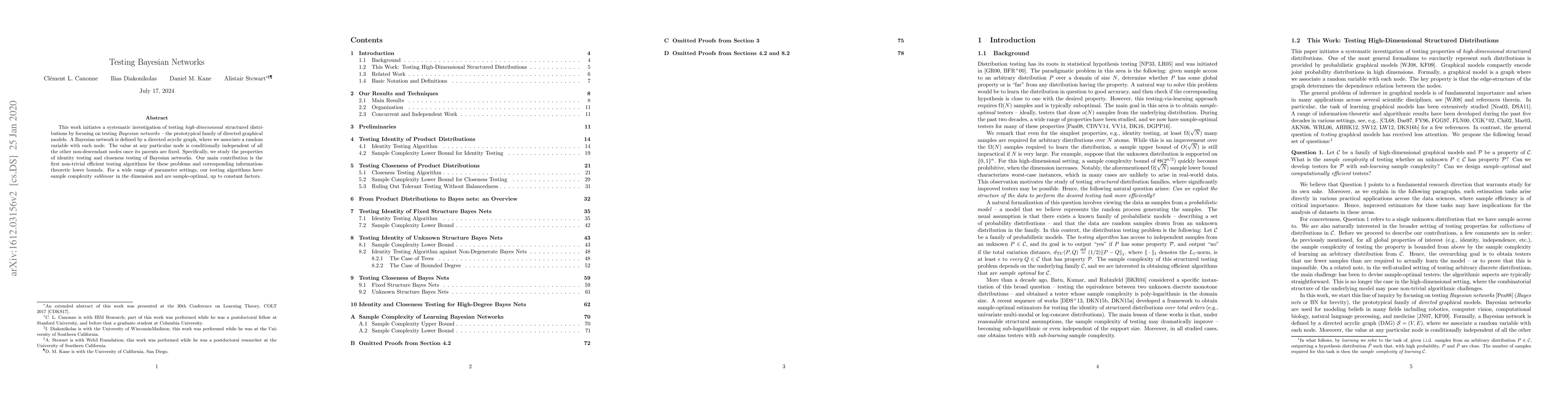 This paper develops efficient algorithms for testing properties of Bayesian networks, focusing on identity and closeness testing, with sample complexity that is sublinear in the dimension and optimal up to constant factors. The study provides the first non-trivial algorithms for these problems along with corresponding information-theoretic lower bounds.