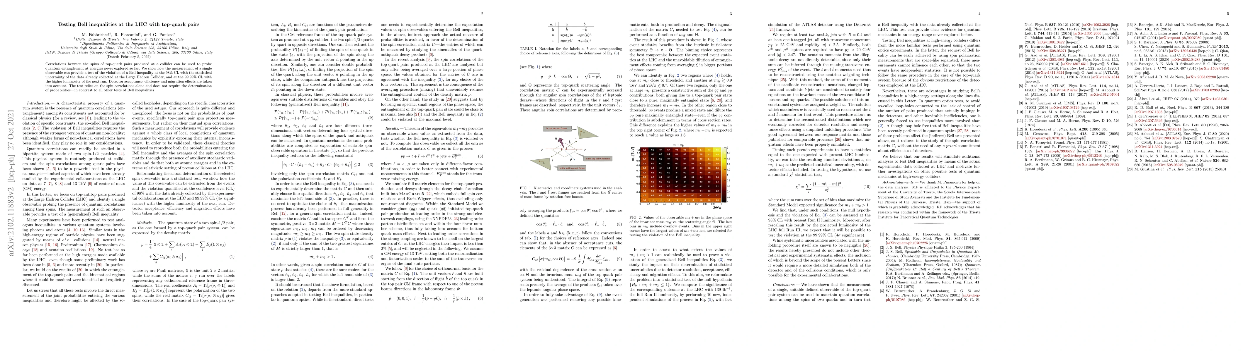 This paper explores the use of entanglement between top-quark pairs to test Bell inequalities at the Large Hadron Collider (LHC), demonstrating that current data can confirm a violation at 98% confidence, with higher precision expected in future runs.