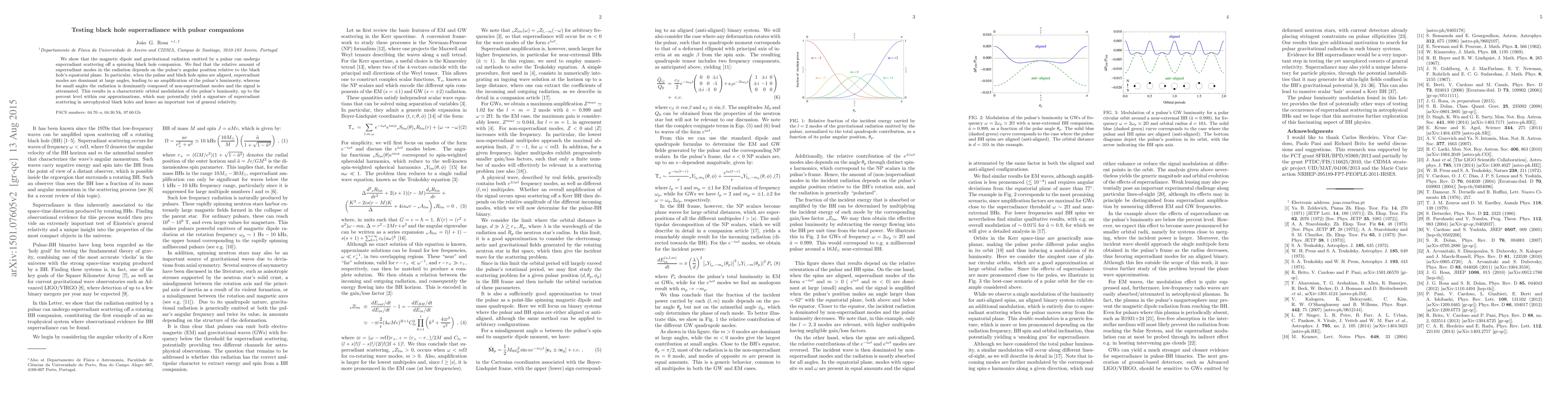 We show that the magnetic dipole and gravitational radiation emitted by a pulsar can undergo superradiant scattering off a spinning black hole companion. We find that the relative amount of superradiant modes in the radiation depends on the pulsar's angular position relative to the black hole's equatorial plane. In particular, when the pulsar and black hole spins are aligned, superradiant modes are dominant at large angles, leading to an amplification of the pulsar's luminosity, whereas for small angles the radiation is dominantly composed of non-superradiant modes and the signal is attenuated. This results in a characteristic orbital modulation of the pulsar's luminosity, up to the percent level within our approximations, which may potentially yield a signature of superradiant scattering in astrophysical black holes and hence an important test of general relativity.