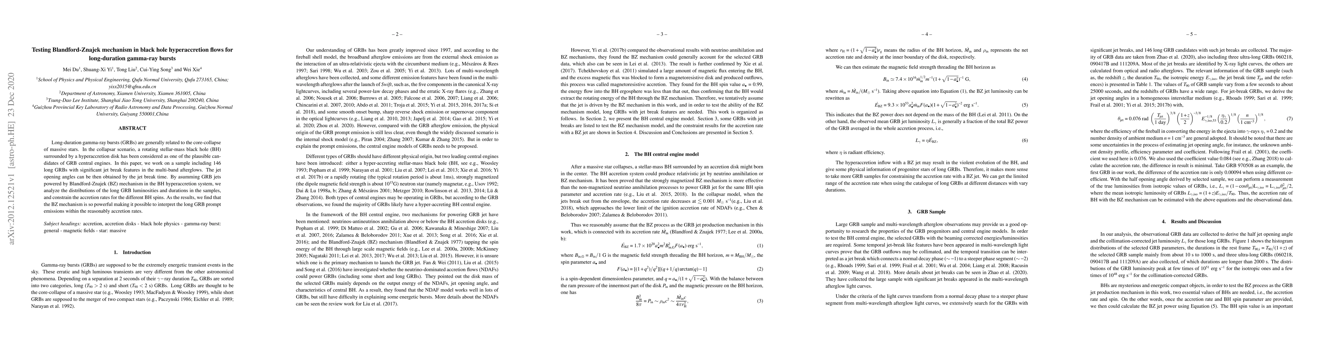 Researchers tested the Blandford-Znajek mechanism in black hole hyperaccretion flows to explain long-duration gamma-ray bursts, finding that it could power the bursts within reasonably accretion rates.