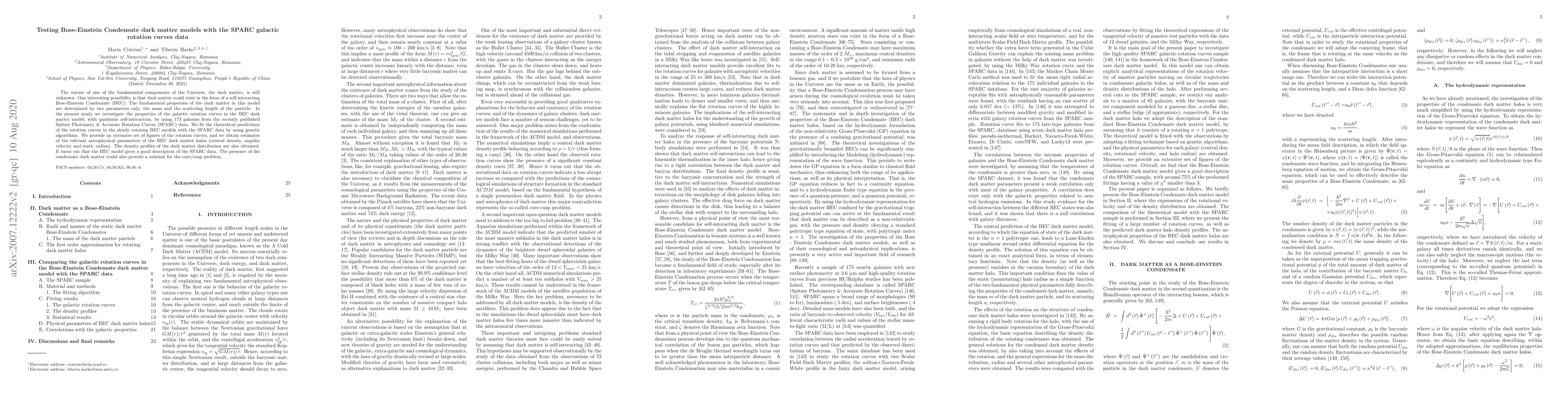 This paper tests the Bose-Einstein Condensate (BEC) dark matter model against SPARC galactic rotation curve data, finding that the model provides a good fit and potentially resolves the core/cusp problem in dark matter distribution. The study uses genetic algorithms to estimate key astrophysical parameters of BEC dark matter halos.