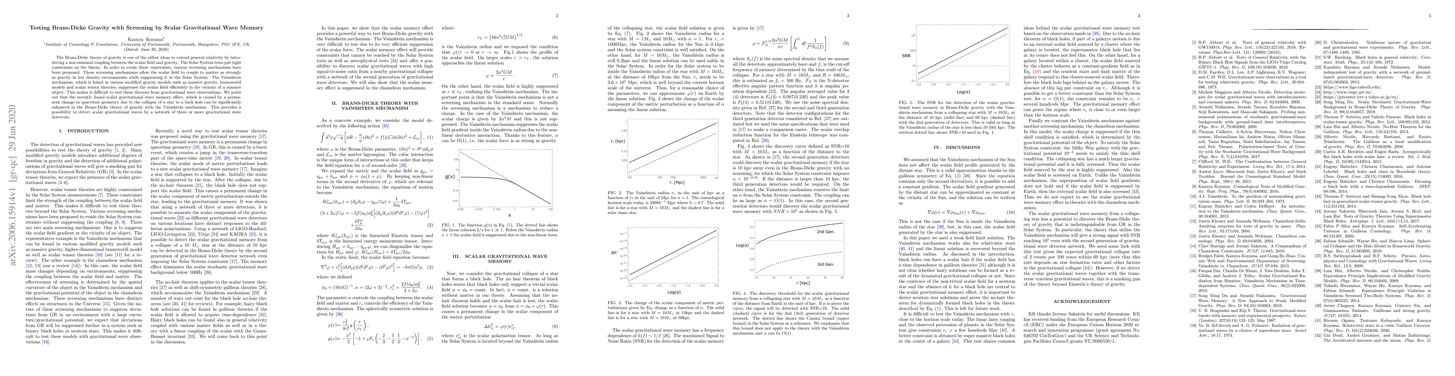 This paper explores how the Brans-Dicke theory of gravity, enhanced by the Vainshtein mechanism, could potentially be tested through scalar gravitational wave memory effects, offering a new method to detect scalar gravitational waves using gravitational wave detectors.