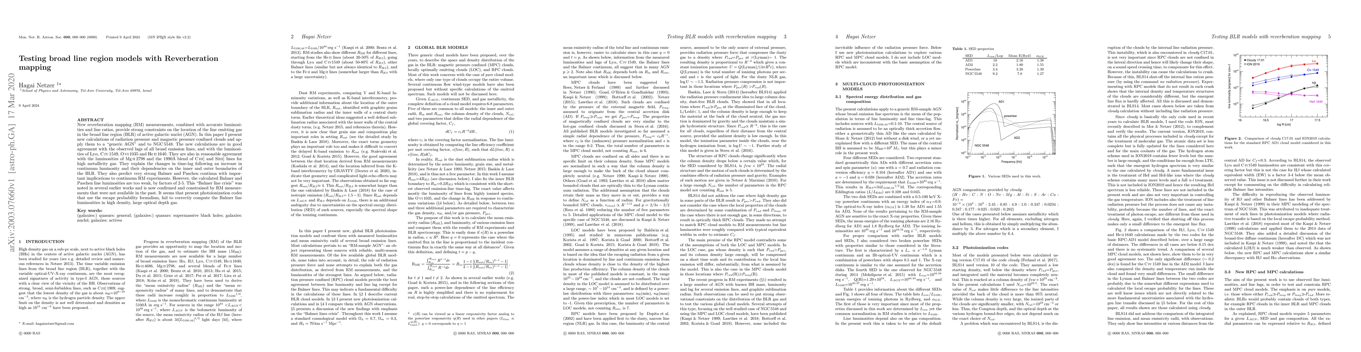 New reverberation mapping (RM) measurements, combined with accurate luminosities and line ratios, provide strong constraints on the location of the line emitting gas in the broad line region (BLR) of active galactic nuclei (AGN). In this paper I present new calculations of radiation pressure and magnetic pressure confined clouds and apply them to a ``generic AGN'' and to NGC 5548. The new calculations are in good agreement with the observed lags of all broad emission lines, and with the luminosities of La, Civ 1549, Ovi 1035 and Heii 1640. They are also in reasonable agreement with the luminosities of Mgii 2798 and the 1990A blend of Ciii] and Siiii] lines for high metallicity gas. They explain the changes in time-lag following an increase in continuum luminosity and their dependencies on the inner and outer boundaries of the BLR. They also predict very strong Balmer and Paschen continua with important implications to continuum RM experiments. However, the calculated Balmer and Paschen line luminosities are too weak, by factors of 2-5. This ``Balmer line crisis'' was noted in several earlier works and is now confirmed and constrained by RM measurements that were not available in the past. It seems that present photoionization codes that use the escape probability formalism, fail to correctly compute the Balmer line luminosities in high density, large optical depth gas.