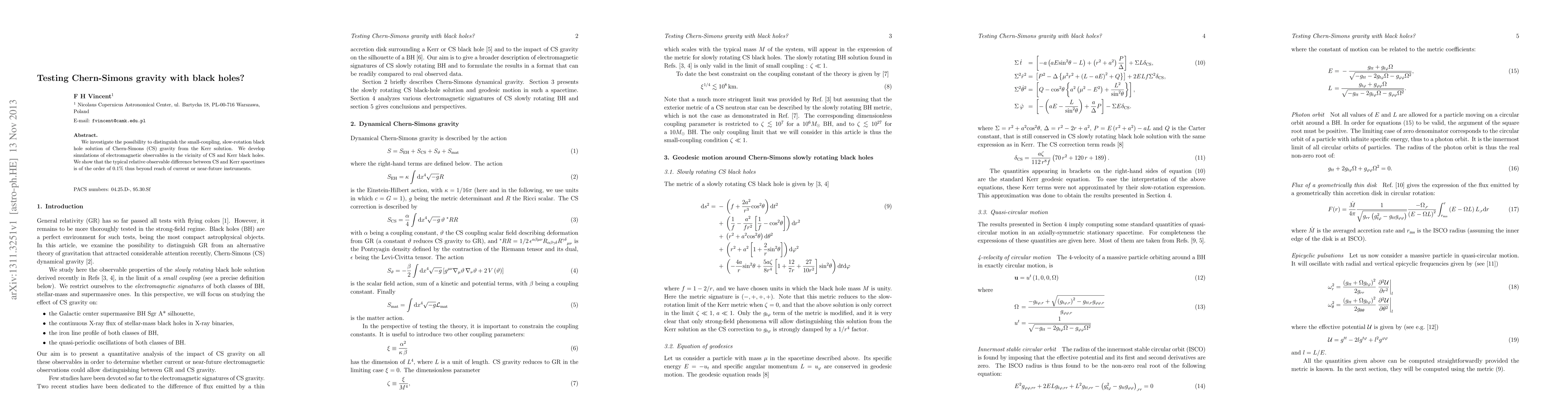 We investigate the possibility to distinguish the small-coupling, slow-rotation black hole solution of Chern-Simons (CS) gravity from the Kerr solution. We develop simulations of electromagnetic observables in the vicinity of CS and Kerr black holes. We show that the typical relative observable difference between CS and Kerr spacetimes is of the order of 0.1% thus beyond reach of current or near-future instruments.