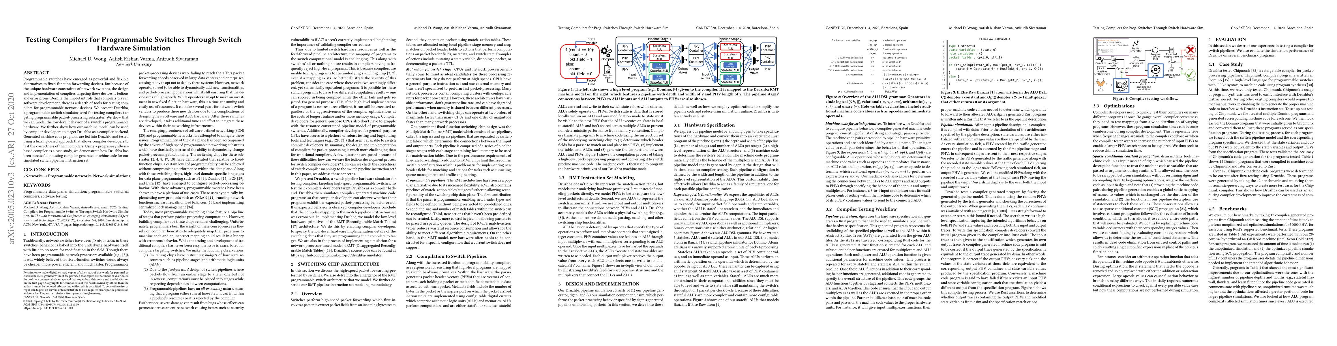 This paper introduces Druzhba, a programmable switch simulator for testing compilers targeting network switches. Druzhba models switch hardware behavior and enables compiler developers to test compiler-generated code using a fuzzing-based approach, demonstrating its effectiveness through a program-synthesis-based compiler case study.