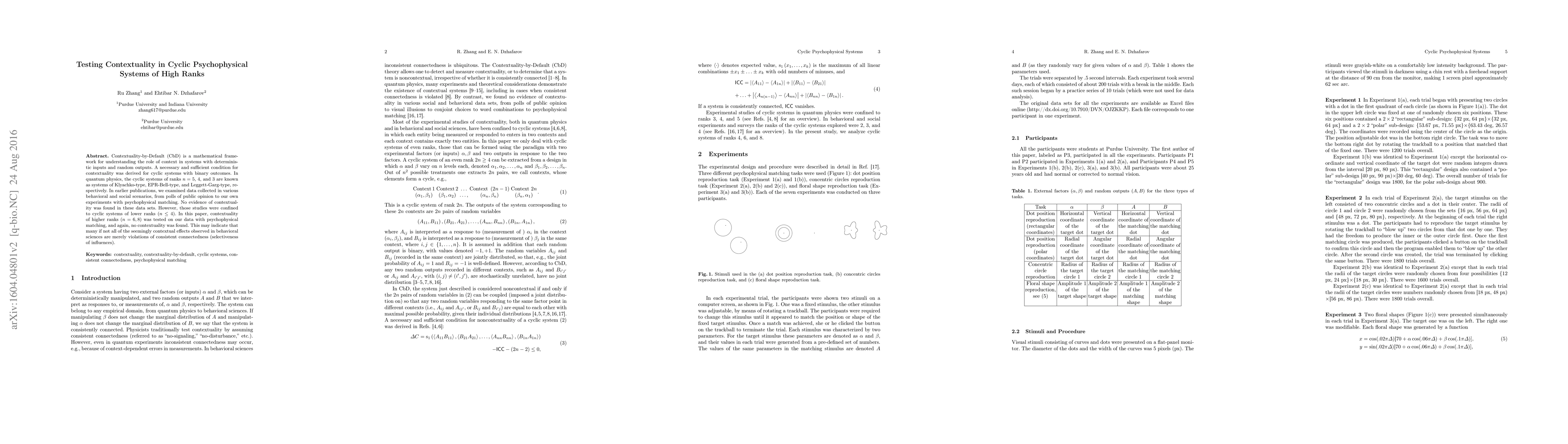 The Contextuality-by-Default (CbD) theory allows one to separate contextuality from context-dependent errors and violations of selective influences (aka "no-signaling" or "no-disturbance" principles). This makes the theory especially applicable to behavioral systems, where violations of selective influences are ubiquitous. For cyclic systems with binary random variables, CbD provides necessary and sufficient conditions for noncontextuality, and these conditions are known to be breached in certain quantum systems. We apply the theory of cyclic systems to a psychophysical double-detection experiment, in which observers were asked to determine presence or absence of a signal property in each of two simultaneously presented stimuli. The results, as in all other behavioral and social systems previous analyzed, indicate lack of contextuality. The role of context in double-detection is confined to lack of selectiveness: the distribution of responses to one of the stimuli is influenced by the state of the other stimulus.