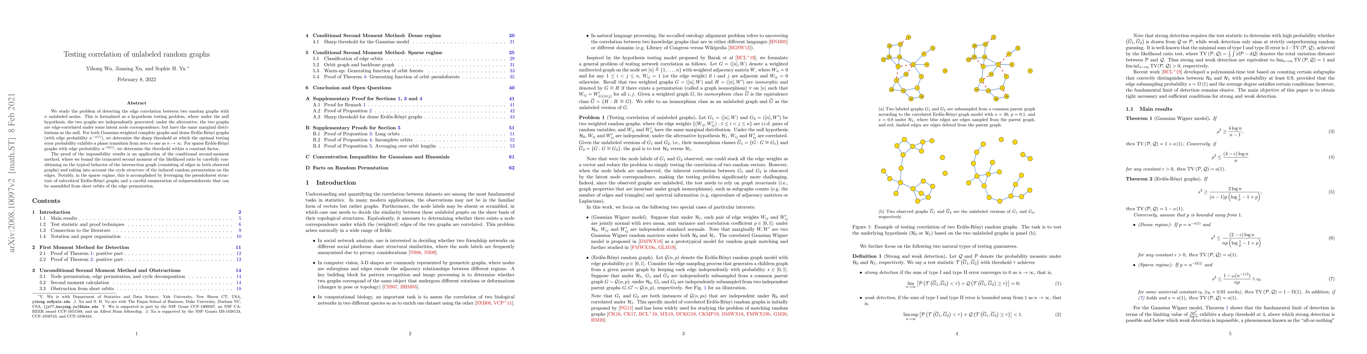 This research investigates the detection of edge correlation between two unlabeled random graphs, establishing the threshold for error probability in hypothesis testing as the number of nodes grows. It determines the sharp transition point for dense and sparse Erdős-Rényi graphs, using the conditional second-moment method to account for intersection graph behavior and pseudoforest structures in sparse cases.