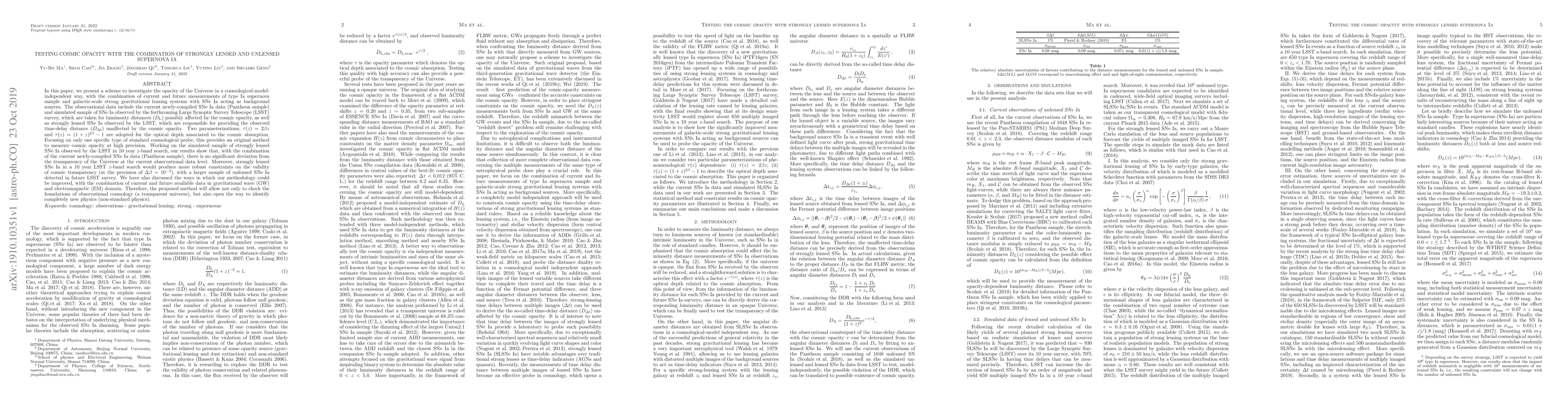 This paper proposes a novel method to measure cosmic opacity using type Ia supernovae (SNe Ia) and strong gravitational lensing, combining current and future observational data. The study finds no significant deviation from cosmic transparency with current data but suggests that future LSST observations of lensed SNe Ia could provide more precise constraints on cosmic opacity.
