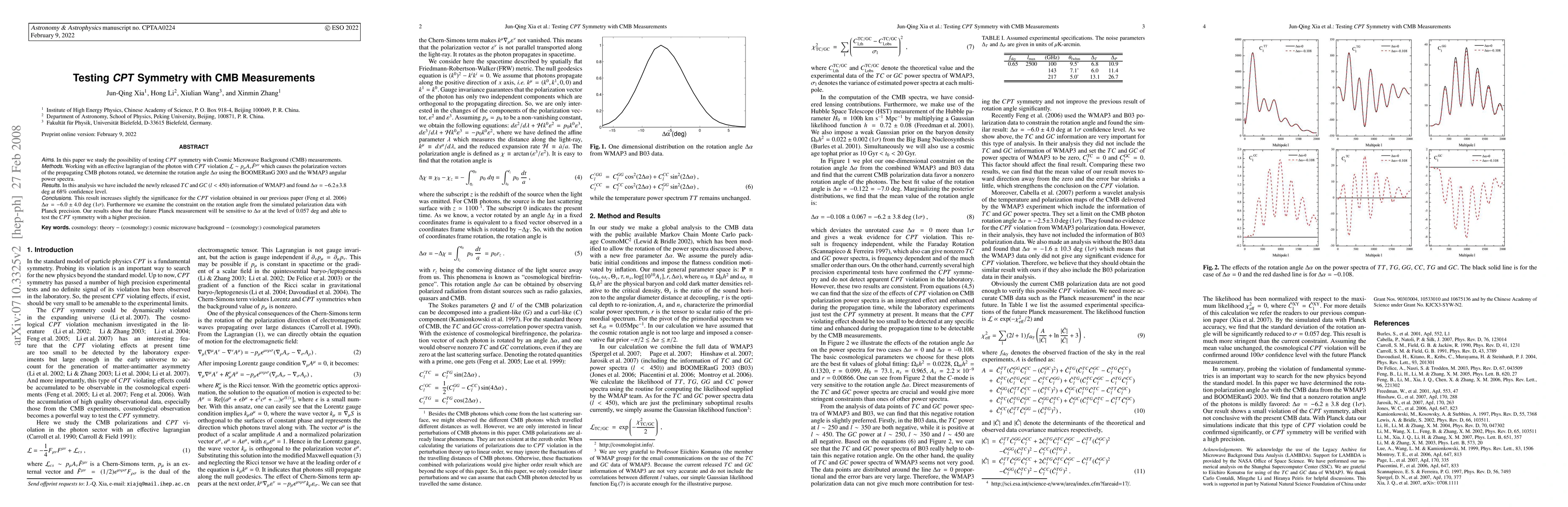 This paper investigates the potential of Cosmic Microwave Background (CMB) measurements to test CPT symmetry, finding a rotation angle of $\Delta\alpha=-6.2\pm3.8$ deg using BOOMERanG 2003 and WMAP3 data. It predicts that the Planck satellite will achieve a precision of 0.057 deg, significantly improving CPT symmetry testing.