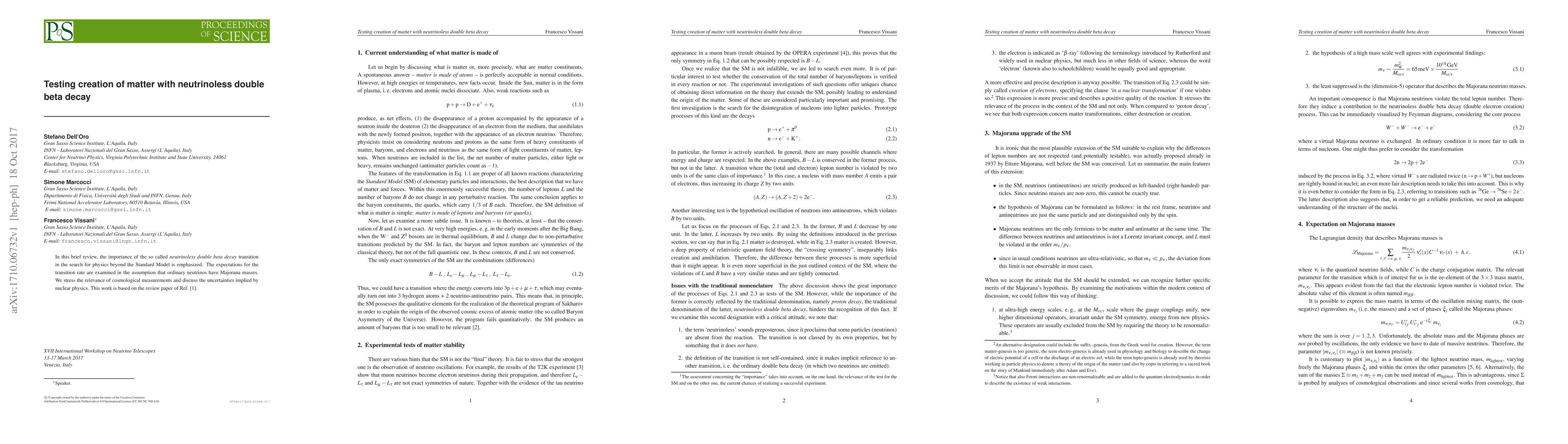 In this brief review, the importance of the so called neutrinoless double beta decay transition in the search for physics beyond the Standard Model is emphasized. The expectations for the transition rate are examined in the assumption that ordinary neutrinos have Majorana masses. We stress the relevance of cosmological measurements and discuss the uncertainties implied by nuclear physics.