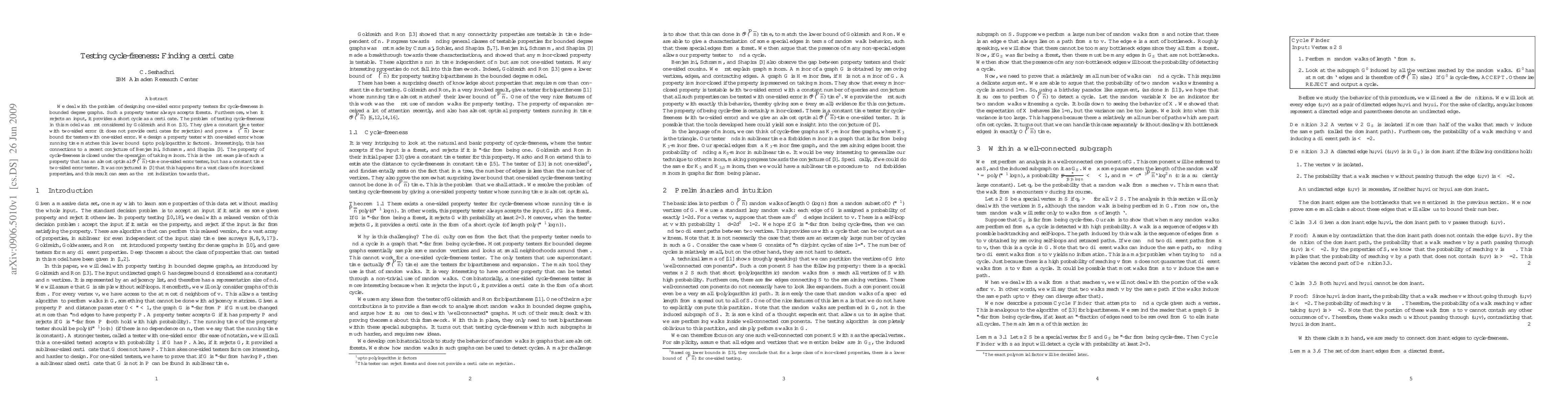 This paper designs a one-sided error property tester for cycle-freeness in bounded degree graphs, providing a short cycle as a certificate upon rejection, and matches the $\Omega(\sqrt{n})$ lower bound for such testers. This result supports a conjecture suggesting similar optimal testers exist for a broad class of minor-closed properties.