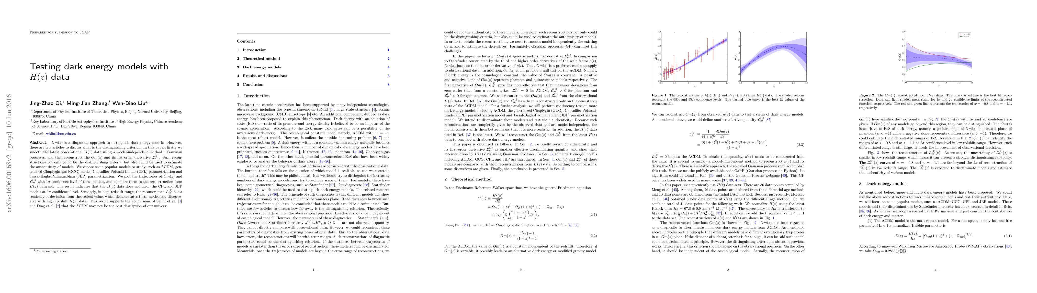 $Om(z)$ is a diagnostic approach to distinguish dark energy models. However, there are few articles to discuss what is the distinguishing criterion. In this paper, firstly we smooth the latest observational $H(z)$ data using a model-independent method -- Gaussian processes, and then reconstruct the $Om(z)$ and its fist order derivative $\mathcal{L}^{(1)}_m$. Such reconstructions not only could be the distinguishing criteria, but also could be used to estimate the authenticity of models. We choose some popular models to study, such as $\Lambda$CDM, generalized Chaplygin gas (GCG) model, Chevallier-Polarski-Linder (CPL) parametrization and Jassal-Bagla-Padmanabhan (JBP) parametrization. We plot the trajectories of $Om(z)$ and $\mathcal{L}^{(1)}_m$ with $1 \sigma$ confidence level of these models, and compare them to the reconstruction from $H(z)$ data set. The result indicates that the $H(z)$ data does not favor the CPL and JBP models at $1 \sigma$ confidence level. Strangely, in high redshift range, the reconstructed $\mathcal{L}^{(1)}_m$ has a tendency of deviation from theoretical value, which demonstrates these models are disagreeable with high redshift $H(z)$ data. This result supports the conclusions of Sahni et al. \citep{sahni2014model} and Ding et al. \citep{ding2015there} that the $\Lambda$CDM may not be the best description of our universe.