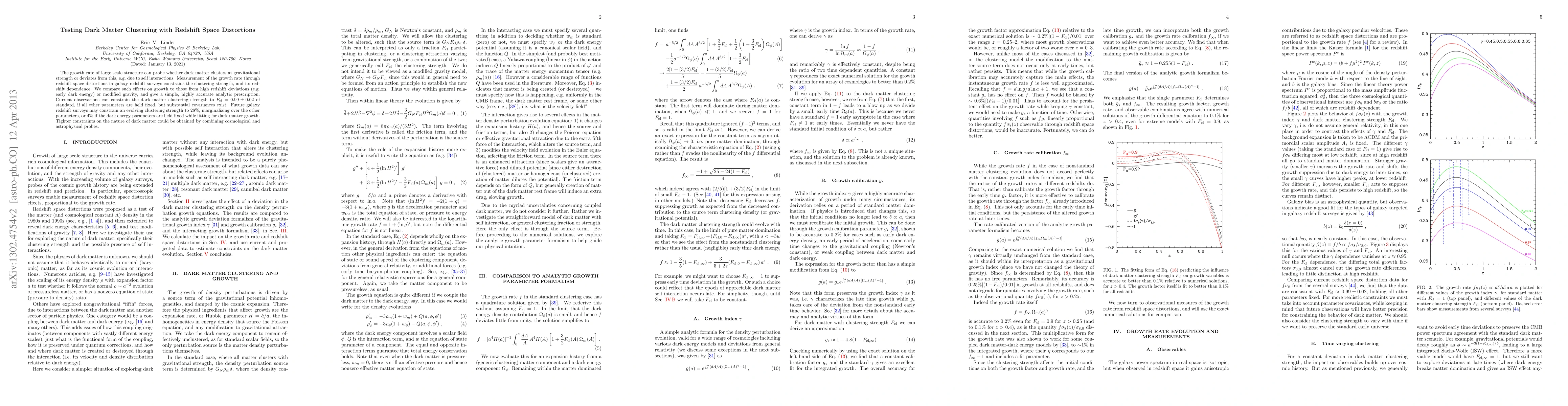 The growth rate of large scale structure can probe whether dark matter clusters at gravitational strength or deviates from this, e.g. due to self interactions. Measurement of the growth rate through redshift space distortions in galaxy redshift surveys constrains the clustering strength, and its redshift dependence. We compare such effects on growth to those from high redshift deviations (e.g. early dark energy) or modified gravity, and give a simple, highly accurate analytic prescription. Current observations can constrain the dark matter clustering strength to F_{cl}=0.99\pm0.02 of standard, if all other parameters are held fixed, but substantial covariances exist. Future galaxy redshift surveys may constrain an evolving clustering strength to 28%, marginalizing over the other parameters, or 4% if the dark energy parameters are held fixed while fitting for dark matter growth. Tighter constraints on the nature of dark matter could be obtained by combining cosmological and astrophysical probes.