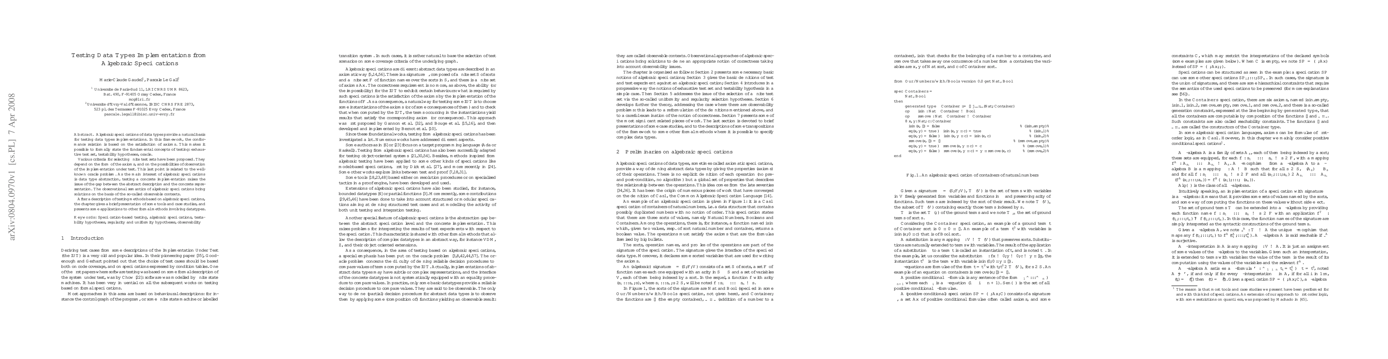 Researchers explored using algebraic specifications to test data type implementations, focusing on bridging the gap between abstract descriptions and concrete representations, and proposing tools for finite test set selection.