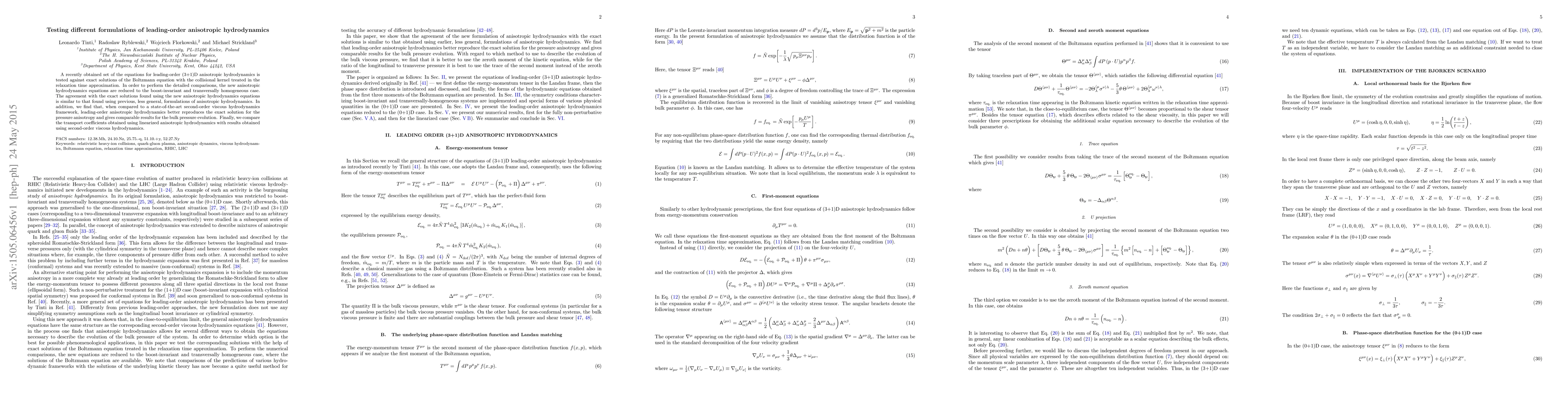 This paper tests new formulations of leading-order anisotropic hydrodynamics against exact Boltzmann solutions and finds comparable accuracy to previous models. It shows that these formulations better reproduce pressure anisotropy than second-order viscous hydrodynamics, though results for bulk pressure evolution are similar.