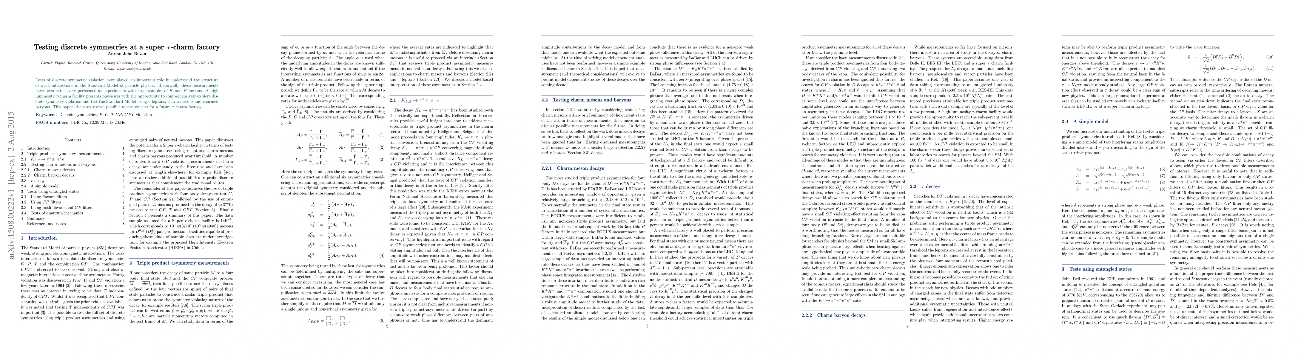 This paper explores the potential of a high-luminosity tau-charm facility to test discrete symmetry violations in the Standard Model, offering new avenues for studying weak interactions using tau leptons, charm mesons, and charmed baryons. It outlines several promising measurements that could be performed at such a future experimental facility.