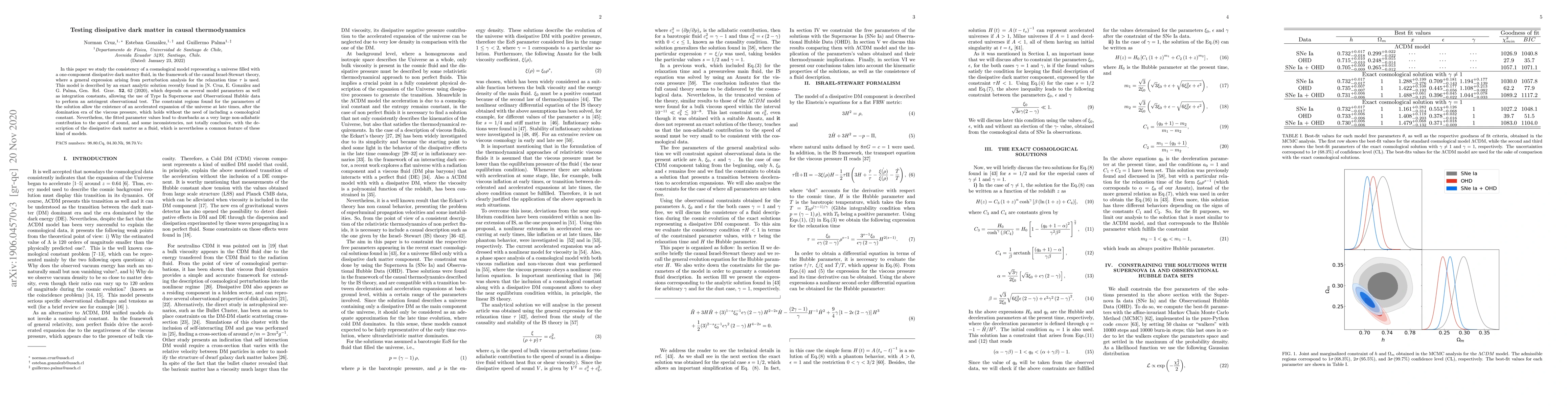 This paper tests a cosmological model with dissipative dark matter using causal thermodynamics, finding that it can explain late-time acceleration without a cosmological constant. However, the model also introduces inconsistencies regarding the nature of dark matter as a fluid.