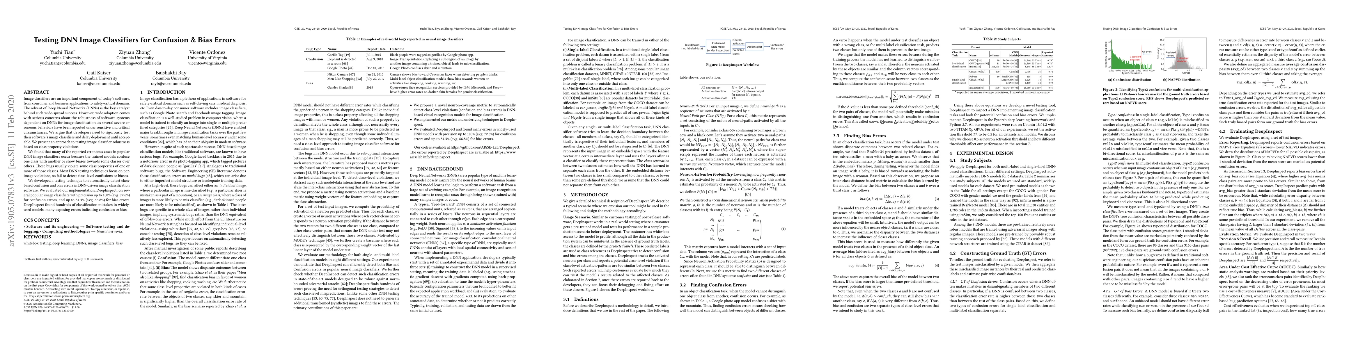 This paper presents DeepInspect, a novel testing technique to detect class-level confusion and bias errors in DNN image classifiers, finding significant errors in popular models that traditional per-image testing techniques miss. The method achieved high precision rates in identifying these issues, highlighting the need for robust testing before deployment.