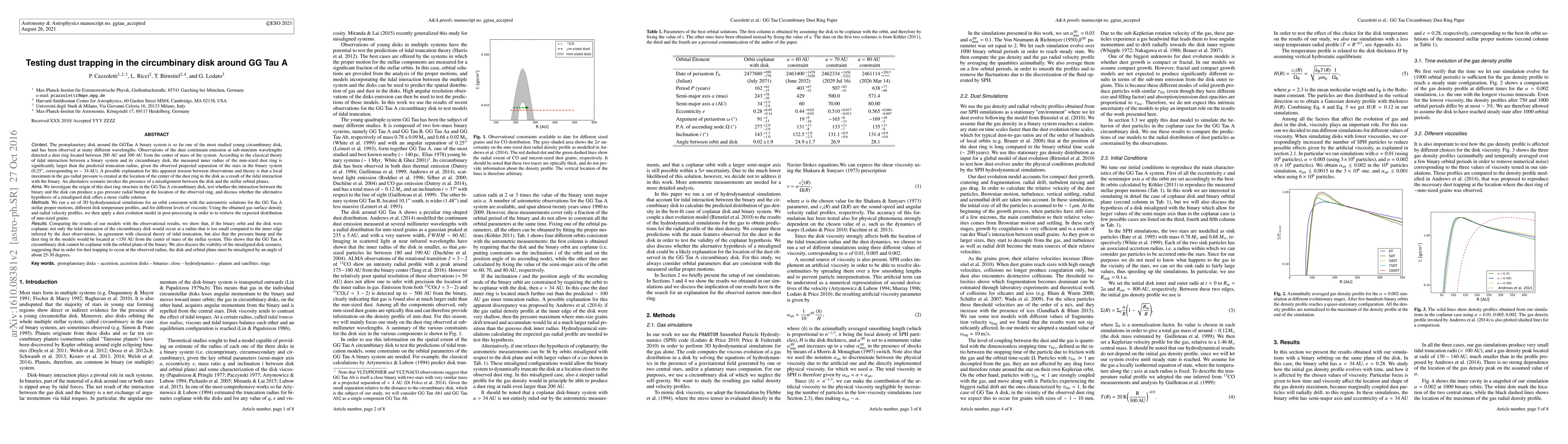 This research investigates the dust ring in the circumbinary disk around GG Tau A, finding that tidal interactions cannot explain the observed dust ring if the disk and binary orbit are coplanar. Simulations suggest a misalignment between the disk and the binary orbital plane by about 25 degrees is necessary for dust trapping at the observed radius.