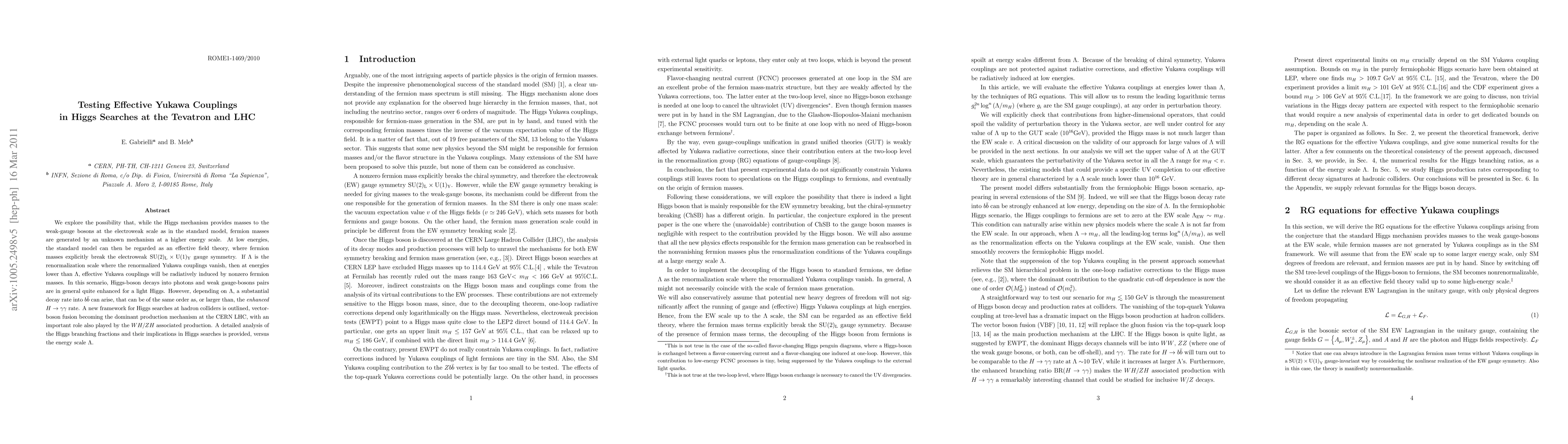 We explore the possibility that, while the Higgs mechanism provides masses to the weak-gauge bosons at the electroweak scale as in the standard model, fermion masses are generated by an unknown mechanism at a higher energy scale. At low energies, the standard model can then be regarded as an effective field theory, where fermion masses explicitly break the electroweak SU(2)_L \times U(1)_Y gauge symmetry. If \Lambda is the renormalization scale where the renormalized Yukawa couplings vanish, then at energies lower than \Lambda, effective Yukawa couplings will be radiatively induced by nonzero fermion masses. In this scenario, Higgs-boson decays into photons and weak gauge-bosons pairs are in general quite enhanced for a light Higgs. However, depending on \Lambda, a substantial decay rate into b \bar{b} can arise, that can be of the same order as, or larger than, the enhanced H\to gamma gamma rate. A new framework for Higgs searches at hadron colliders is outlined, vector-boson fusion becoming the dominant production mechanism at the CERN LHC, with an important role also played by the WH/ZH associated production. A detailed analysis of the Higgs branching fractions and their implications in Higgs searches is provided, versus the energy scale \Lambda.