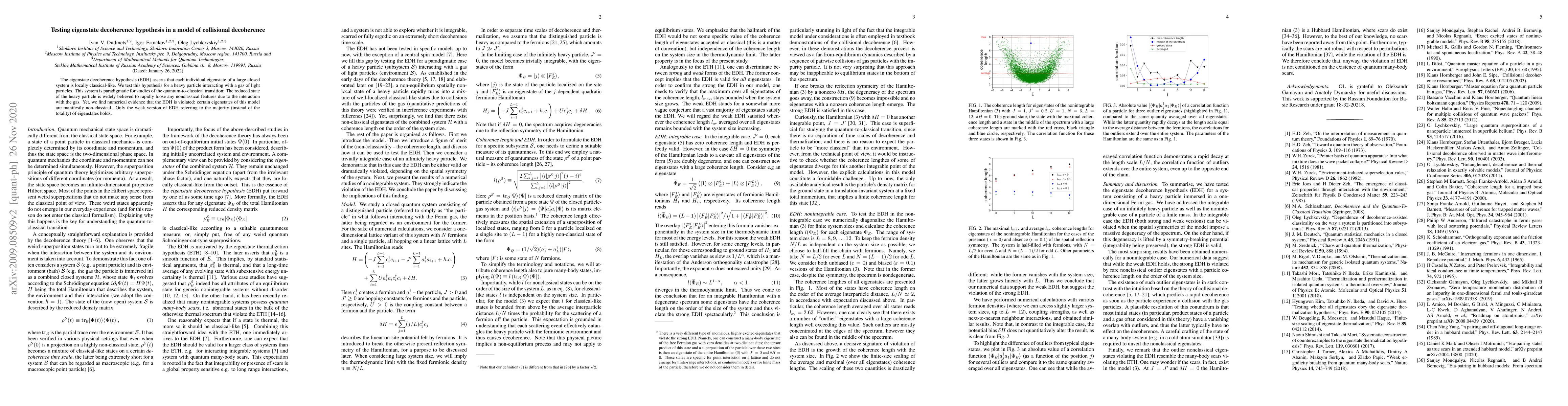 The eigenstate decoherence hypothesis (EDH) asserts that each individual eigenstate of a large closed system is locally classical-like. We test this hypothesis for a heavy particle interacting with a gas of light particles. This system is paradigmatic for studies of the quantum-to-classical transition: The reduced state of the heavy particle is widely believed to rapidly loose any nonclassical features due to the interaction with the gas. Yet, we find numerical evidence that the EDH is violated: certain eigenstates of this model are manifestly non-classical. Only the weak version of EDH referring to the majority (instead of the totality) of eigenstates holds.