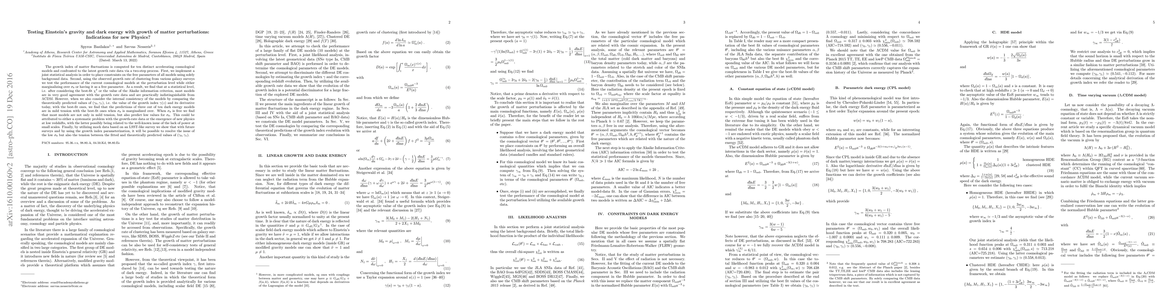 The growth index of matter fluctuations is computed for ten distinct accelerating cosmological models and confronted to the latest growth rate data via a two-step process. First, we implement a joint statistical analysis in order to place constraints on the free parameters of all models using solely background data. Second, using the observed growth rate of clustering from various galaxy surveys we test the performance of the current cosmological models at the perturbation level while either marginalizing over $\sigma_8$ or having it as a free parameter. As a result, we find that at a statistical level, i.e. after considering the best-fit $\chi^2$ or the value of the Akaike information criterion, most models are in very good agreement with the growth rate data and are practically indistinguishable from $\Lambda$CDM. However, when we also consider the internal consistency of the models by comparing the theoretically predicted values of $(\gamma_0, \gamma_1)$, i.e. the value of the growth index $\gamma(z)$ and its derivative today, with the best-fit ones, we find that the predictions of three out of ten dark energy models are in mild tension with the best-fit ones when $\sigma_8$ is marginalized over. When $\sigma_8$ is free we find that most models are not only in mild tension, but also predict low values for $\sigma_8$. This could be attributed to either a systematic problem with the growth-rate data or the emergence of new physics at low redshifts, with the latter possibly being related to the well-known issue of the lack of power at small scales. Finally, by utilizing mock data based on an LSST-like survey we show that with future surveys and by using the growth index parameterization, it will be possible to resolve the issue of the low $\sigma_8$ but also the tension between the fitted and theoretically predicted values of $(\gamma_0, \gamma_1)$.