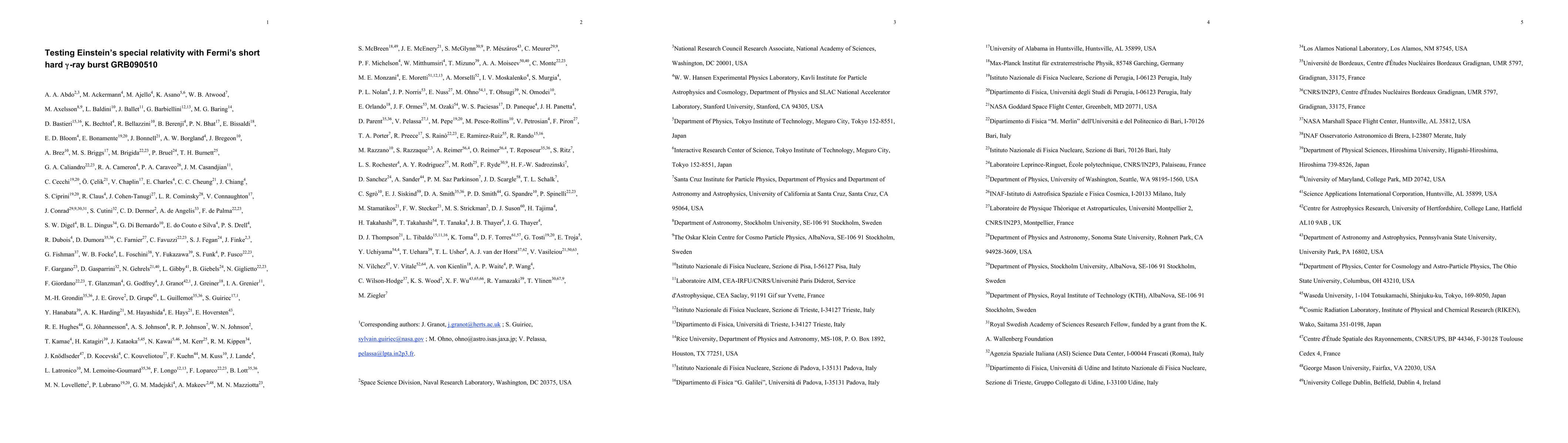 Gamma-ray bursts (GRBs) are the most powerful explosions in the universe and probe physics under extreme conditions. GRBs divide into two classes, of short and long duration, thought to originate from different types of progenitor systems. The physics of their gamma-ray emission is still poorly known, over 40 years after their discovery, but may be probed by their highest-energy photons. Here we report the first detection of high-energy emission from a short GRB with measured redshift, GRB 090510, using the Fermi Gamma-ray Space Telescope. We detect for the first time a GRB prompt spectrum with a significant deviation from the Band function. This can be interpreted as two distinct spectral components, which challenge the prevailing gamma-ray emission mechanism: synchrotron - synchrotron self-Compton. The detection of a 31 GeV photon during the first second sets the highest lower limit on a GRB outflow Lorentz factor, of >1200, suggesting that the outflows powering short GRBs are at least as highly relativistic as those powering long GRBs. Even more importantly, this photon sets limits on a possible linear energy dependence of the propagation speed of photons (Lorentz-invariance violation) requiring for the first time a quantum-gravity mass scale significantly above the Planck mass.