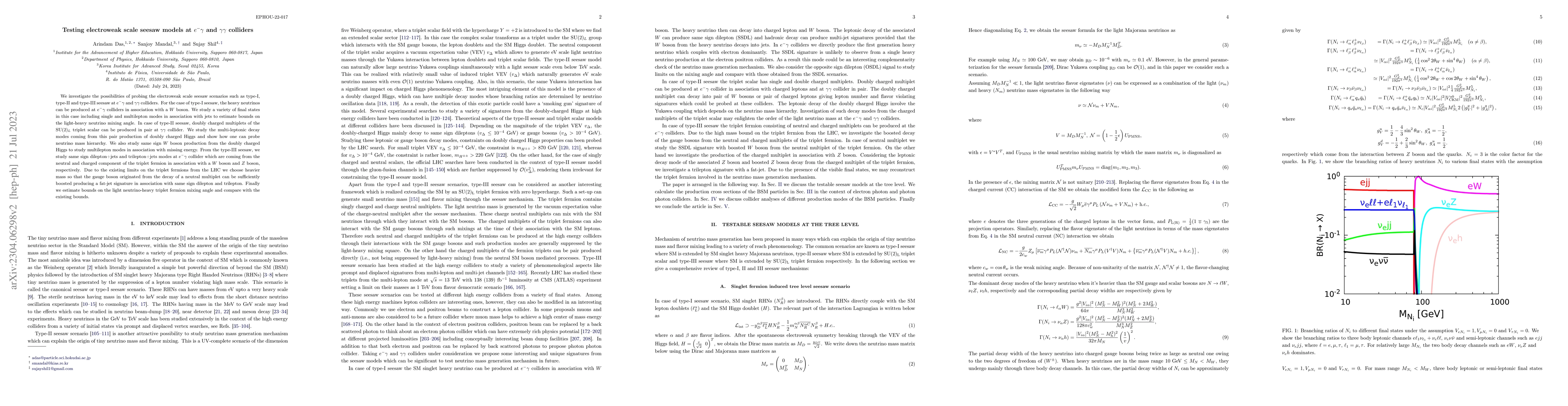 This paper explores the potential of $e^{-}\gamma$ and $\gamma\gamma$ colliders to probe various electroweak scale seesaw models, including type-I, type-II, and type-III. It investigates heavy neutrino production and decay signatures to estimate mixing angles and compare with existing LHC limits.