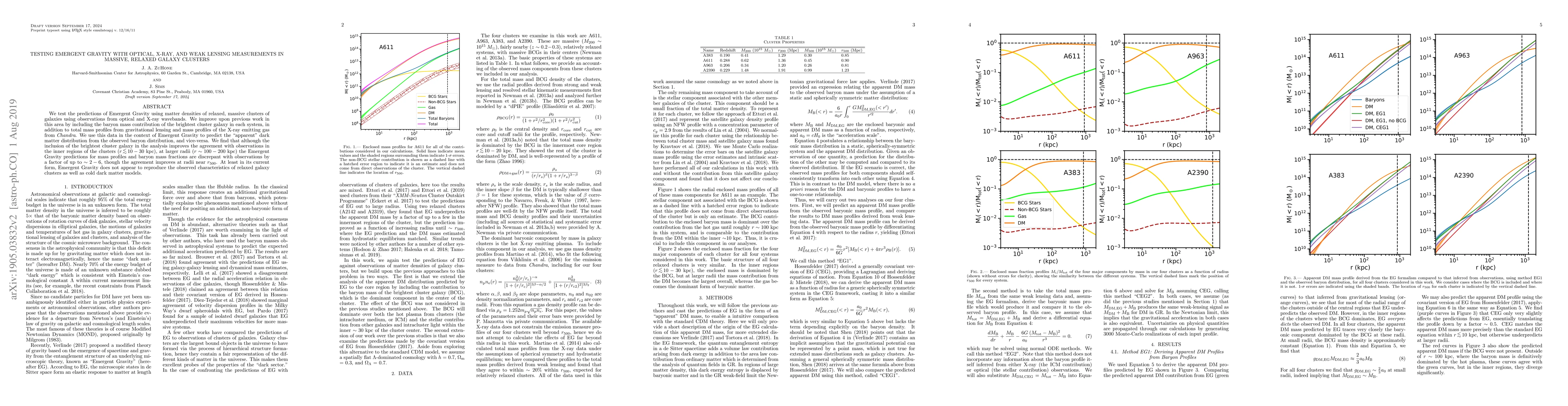 This study tests Emergent Gravity in massive, relaxed galaxy clusters by incorporating optical, X-ray, and weak lensing data. While the inclusion of the brightest cluster galaxy improves inner region agreement, Emergent Gravity shows significant discrepancies with observations at larger radii, suggesting it does not match cold dark matter models as well.