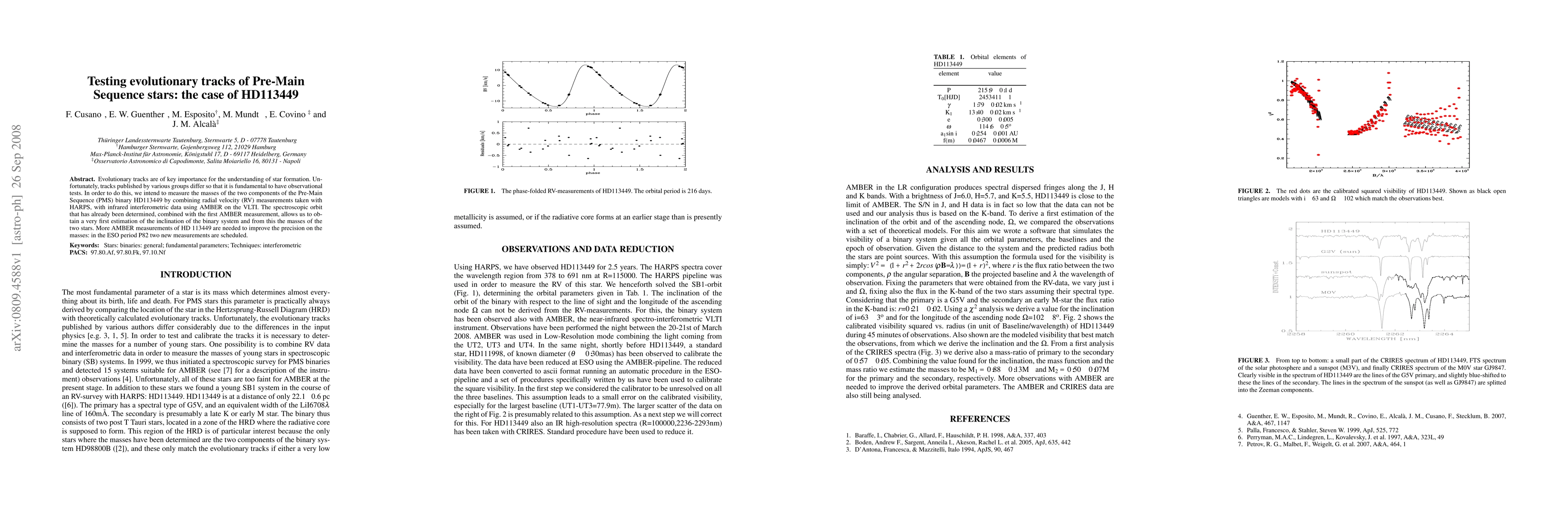 This paper aims to test evolutionary tracks of Pre-Main Sequence stars using HD113449 as a case study. By combining HARPS radial velocity data and AMBER interferometric data, the authors estimate the binary system's inclination and the masses of its components, with further AMBER measurements planned to enhance precision.