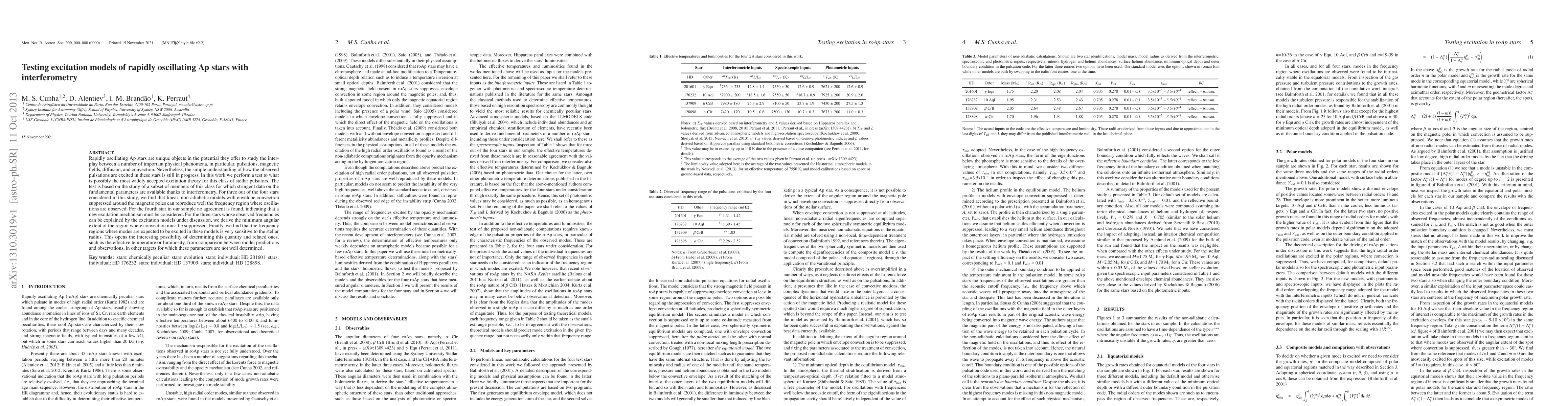 Rapidly oscillating Ap stars are unique objects in the potential they offer to study the interplay between a number of important physical phenomena, in particular, pulsations, magnetic fields, diffusion, and convection. Nevertheless, the simple understanding of how the observed pulsations are excited in these stars is still in progress. In this work we perform a test to what is possibly the most widely accepted excitation theory for this class of stellar pulsators. The test is based on the study of a subset of members of this class for which stringent data on the fundamental parameters are available thanks to interferometry. For three out of the four stars considered in this study, we find that linear, non-adiabatic models with envelope convection suppressed around the magnetic poles can reproduce well the frequency region where oscillations are observed. For the fourth star in our sample no agreement is found, indicating that a new excitation mechanism must be considered. For the three stars whose observed frequencies can be explained by the excitation models under discussion, we derive the minimum angular extent of the region where convection must be suppressed. Finally, we find that the frequency regions where modes are expected to be excited in these models is very sensitive to the stellar radius. This opens the interesting possibility of determining this quantity and related ones, such as the effective temperature or luminosity, from comparison between model predictions and observations, in other targets for which these parameters are not well determined.