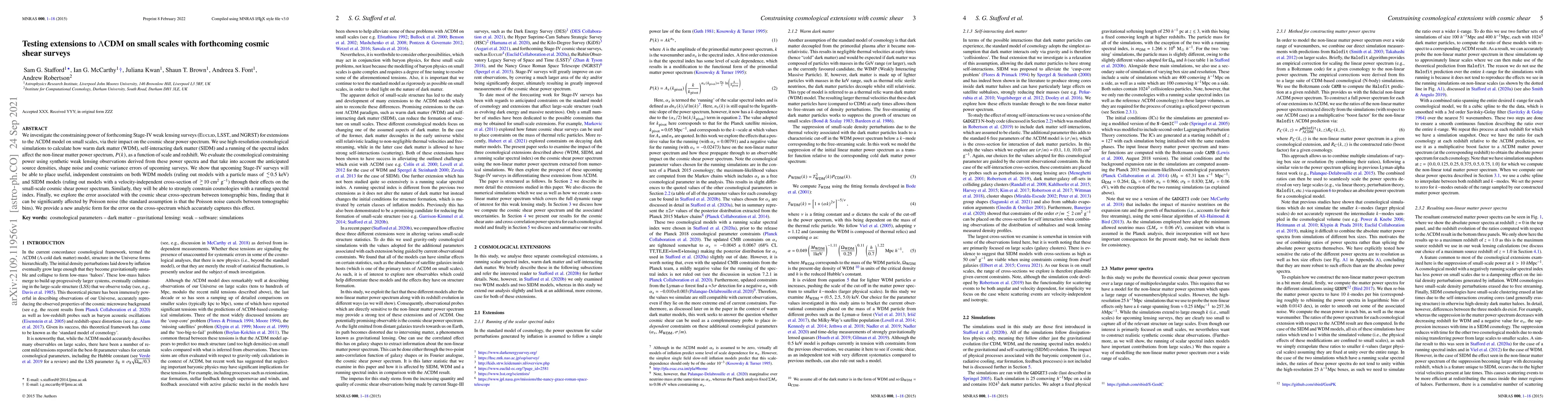 This paper examines how upcoming Stage-IV weak lensing surveys will constrain extensions to the LCDM model on small scales, particularly focusing on warm dark matter, self-interacting dark matter, and a running spectral index. It finds that these surveys will provide significant constraints on WDM and SIDM models through their effects on the cosmic shear power spectrum.