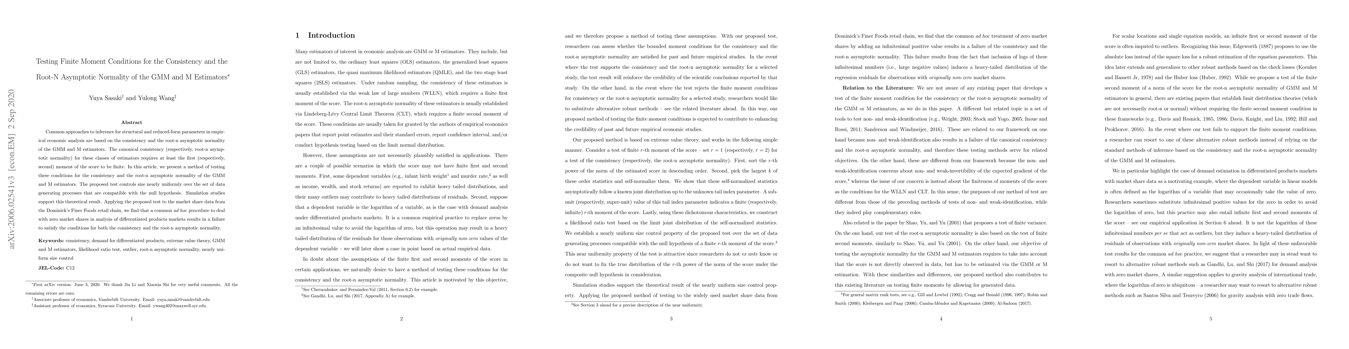 This paper proposes a method to test finite moment conditions for the consistency and root-n asymptotic normality of GMM and M estimators, finding that a common approach to handling zero market shares fails to meet these conditions in a retail market analysis. Simulation results support the proposed test's effectiveness.