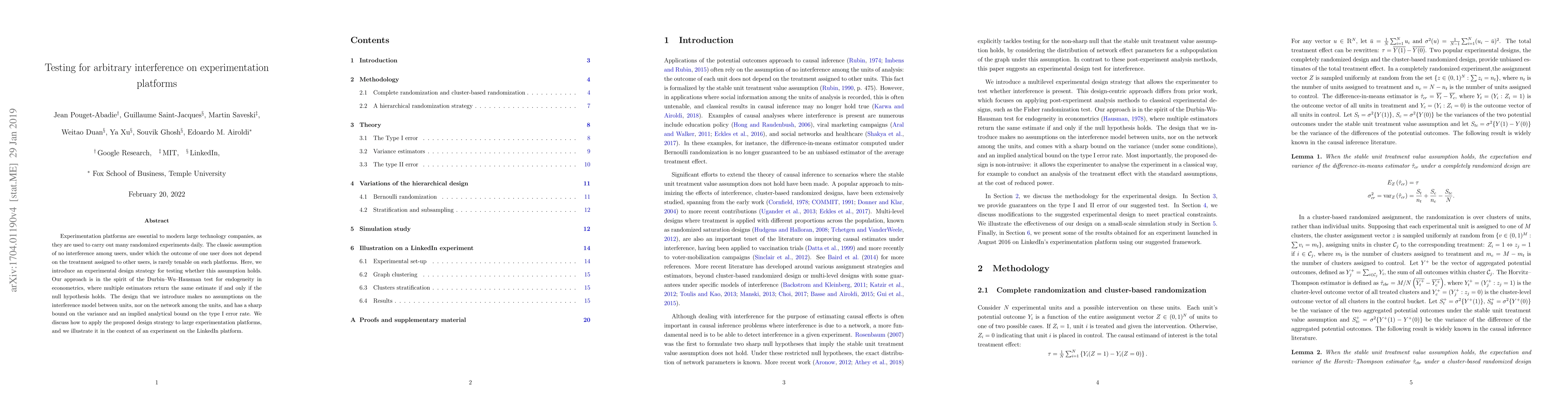 The research introduces a unique approach to testing for interference in randomized experiments, distinguishing itself from previous work by not making assumptions on the interference model or network structure. It offers a practical design strategy applicable to large-scale experimentation platforms, supported by a simulation study and a real-world LinkedIn experiment illustration.