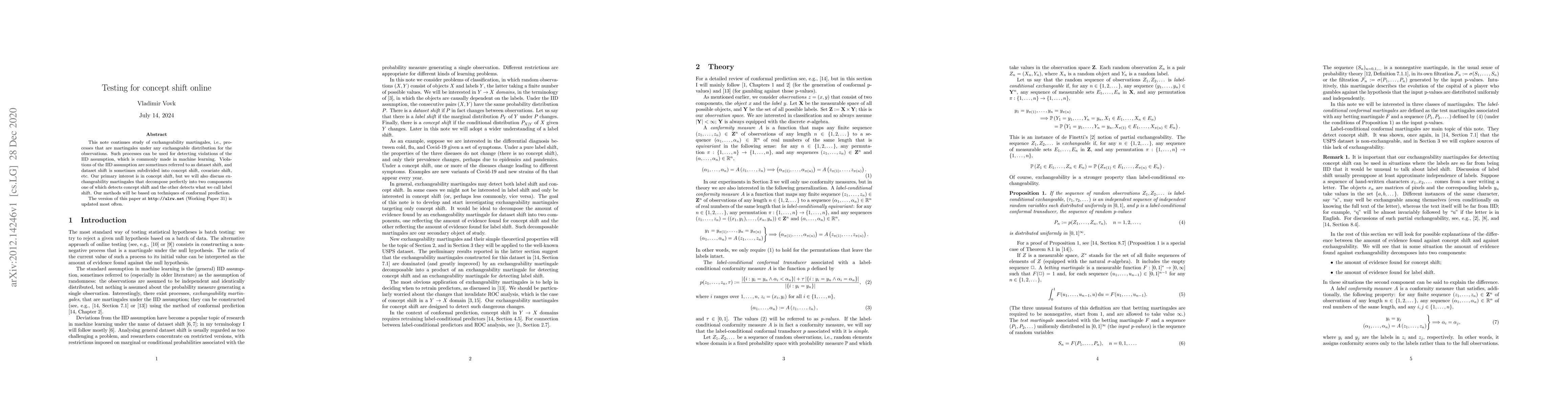 This note continues study of exchangeability martingales, i.e., processes that are martingales under any exchangeable distribution for the observations. Such processes can be used for detecting violations of the IID assumption, which is commonly made in machine learning. Violations of the IID assumption are sometimes referred to as dataset shift, and dataset shift is sometimes subdivided into concept shift, covariate shift, etc. Our primary interest is in concept shift, but we will also discuss exchangeability martingales that decompose perfectly into two components one of which detects concept shift and the other detects what we call label shift. Our methods will be based on techniques of conformal prediction.