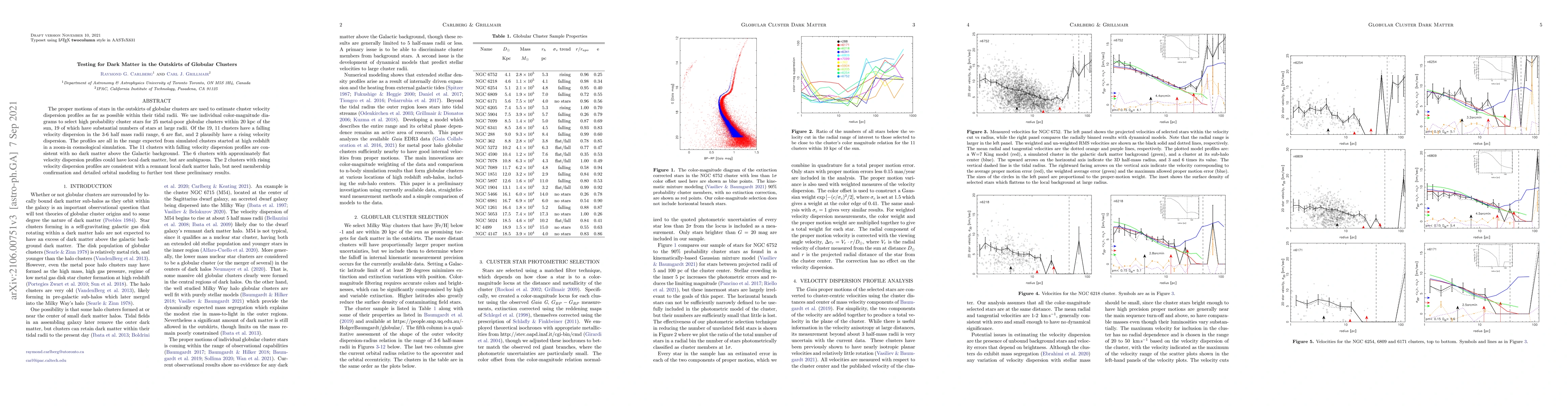 This study investigates the presence of dark matter in globular clusters by analyzing the velocity dispersion profiles of stars in their outskirts. The results suggest that 11 clusters show no dark matter above the Galactic background, 6 have ambiguous profiles possibly indicating local dark matter, and 2 show rising profiles consistent with a remnant local dark matter halo, though further analysis is needed.