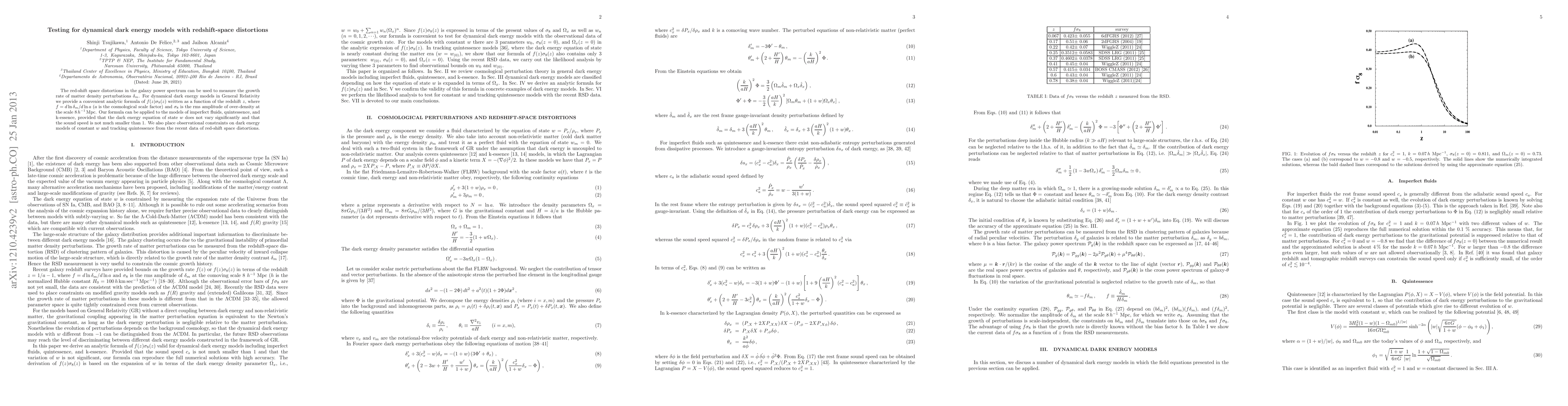 The red-shift space distortions in the galaxy power spectrum can be used to measure the growth rate of matter density perturbations delta_m. For dynamical dark energy models in General Relativity we provide a convenient analytic formula of f(z) sigma_8(z) written as a function of the redshift z, where f=d ln delta_m/d ln a (a is the cosmological scale factor) and sigma_8 is the rms amplitude of over-density at the scale 8 h^{-1} Mpc. Our formula can be applied to the models of imperfect fluids, quintessence, and k-essence, provided that the dark energy equation of state w does not vary significantly and that the sound speed is not much smaller than 1. We also place observational constraints on dark energy models of constant w and tracking quintessence from the recent data of red-shift space distortions.