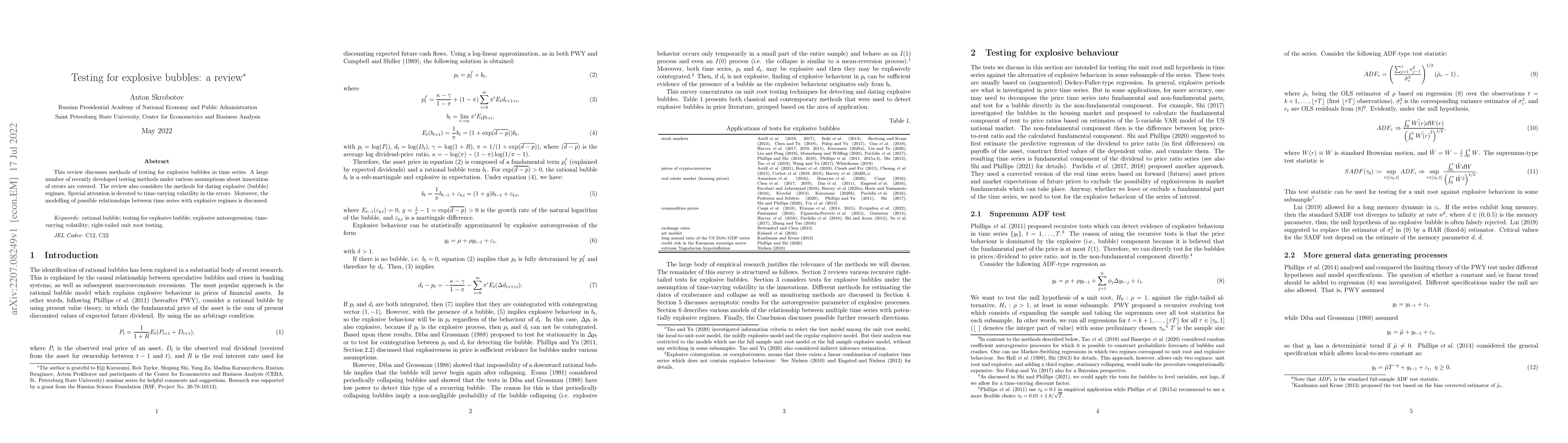 This review contributes to the understanding of explosive bubbles by highlighting recent methods that can be applied to empirical applications, ultimately informing policymakers and financial practitioners.
