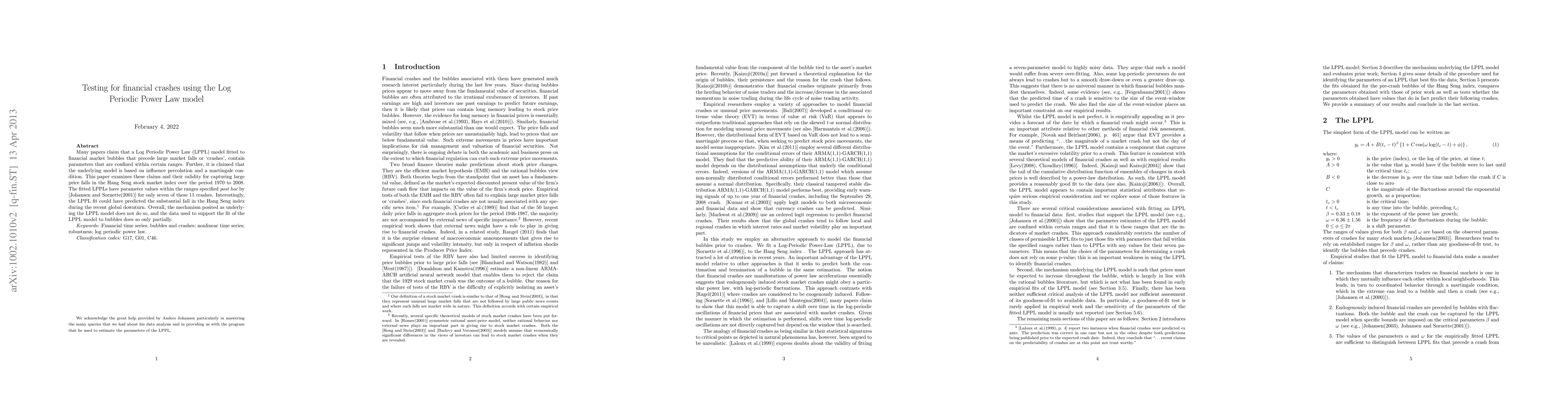 A number of papers claim that a Log Periodic Power Law (LPPL) fitted to financial market bubbles that precede large market falls or 'crashes', contain parameters that are confined within certain ranges. The mechanism that has been claimed as underlying the LPPL, is based on influence percolation and a martingale condition. This paper examines these claims and the robustness of the LPPL for capturing large falls in the Hang Seng stock market index, over a 30-year period, including the current global downturn. We identify 11 crashes on the Hang Seng market over the period 1970 to 2008. The fitted LPPLs have parameter values within the ranges specified post hoc by Johansen and Sornette (2001) for only seven of these crashes. Interestingly, the LPPL fit could have predicted the substantial fall in the Hang Seng index during the recent global downturn. We also find that influence percolation combined with a martingale condition holds for only half of the pre-crash bubbles previously reported. Overall, the mechanism posited as underlying the LPPL does not do so, and the data used to support the fit of the LPPL to bubbles does so only partially.