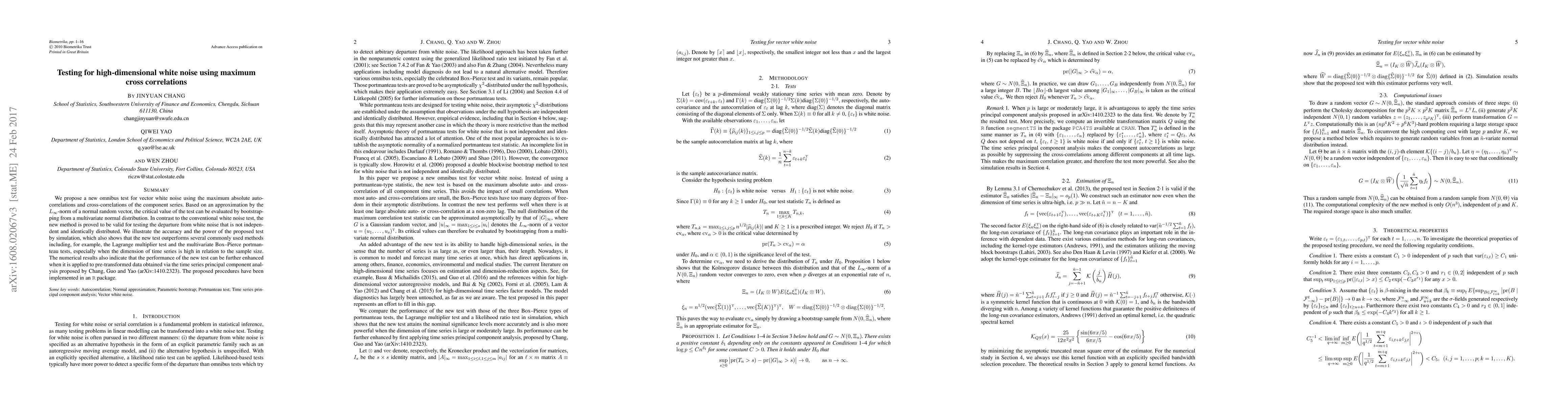 This paper introduces a new omnibus test for high-dimensional vector white noise using maximum cross-correlations, validated through simulations that show superior performance over existing methods, especially in high-dimensional settings. The test is implemented in an R-package called HDtest.