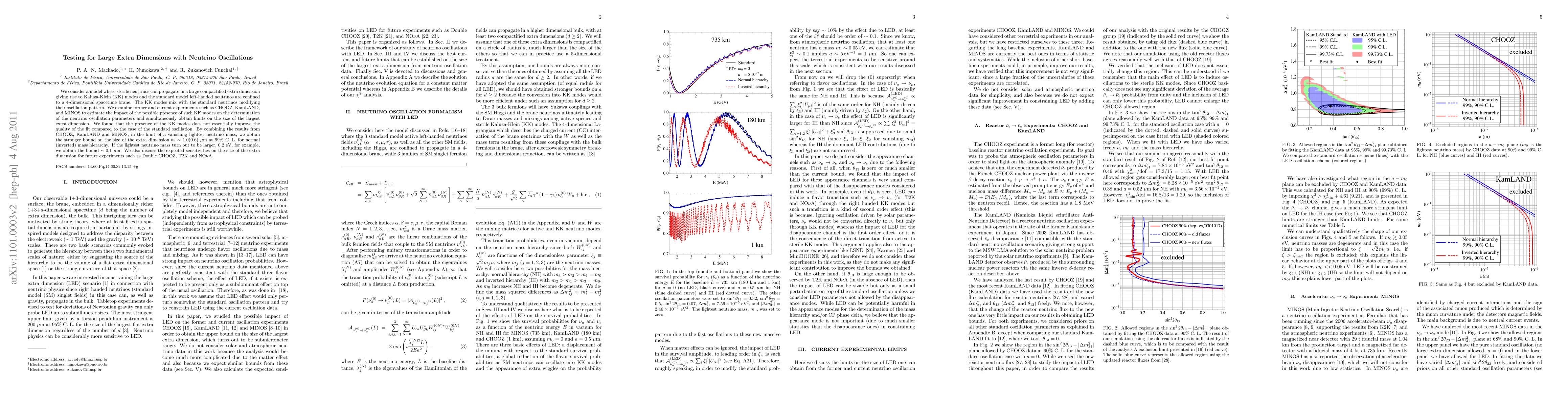 We consider a model where sterile neutrinos can propagate in a large compactified extra dimension giving rise to Kaluza-Klein (KK) modes and the standard model left-handed neutrinos are confined to a 4-dimensional spacetime brane. The KK modes mix with the standard neutrinos modifying their oscillation pattern. We examine former and current experiments such as CHOOZ, KamLAND, and MINOS to estimate the impact of the possible presence of such KK modes on the determination of the neutrino oscillation parameters and simultaneously obtain limits on the size of the largest extra dimension. We found that the presence of the KK modes does not essentially improve the quality of the fit compared to the case of the standard oscillation. By combining the results from CHOOZ, KamLAND and MINOS, in the limit of a vanishing lightest neutrino mass, we obtain the stronger bound on the size of the extra dimension as ~ 1.0(0.6) micrometer at 99% C. L. for normal (inverted) mass hierarchy. If the lightest neutrino mass turn out to be larger, 0.2 eV, for example, we obtain the bound ~ 0.1 micrometer. We also discuss the expected sensitivities on the size of the extra dimension for future experiments such as Double CHOOZ, T2K and NOvA.