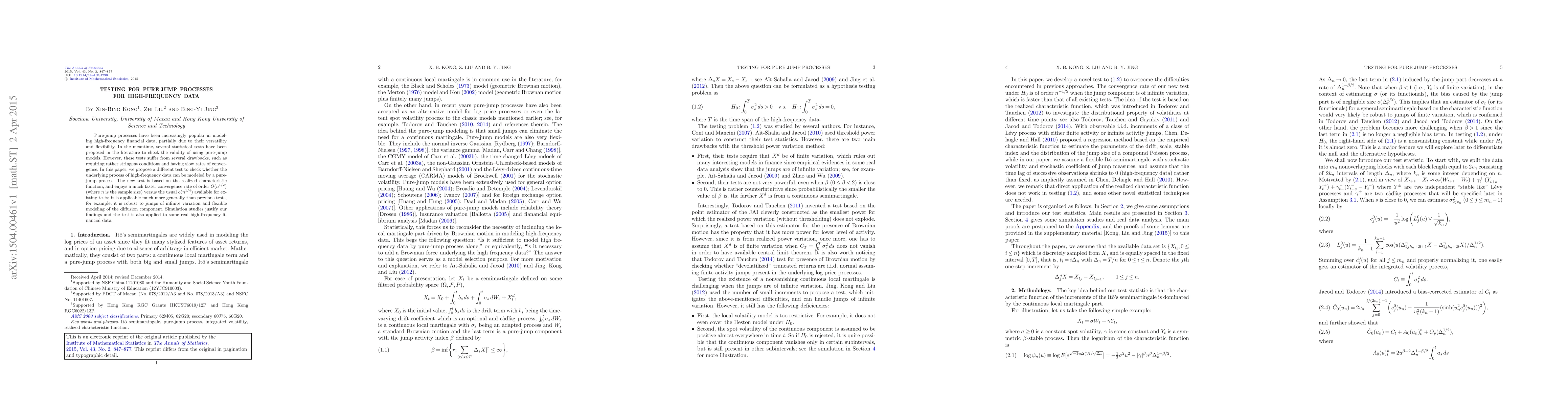 A new test for pure-jump processes in high-frequency data is proposed, showing faster convergence rates and wider applicability than existing tests. The test's results are justified through simulation studies and applied to real financial data.