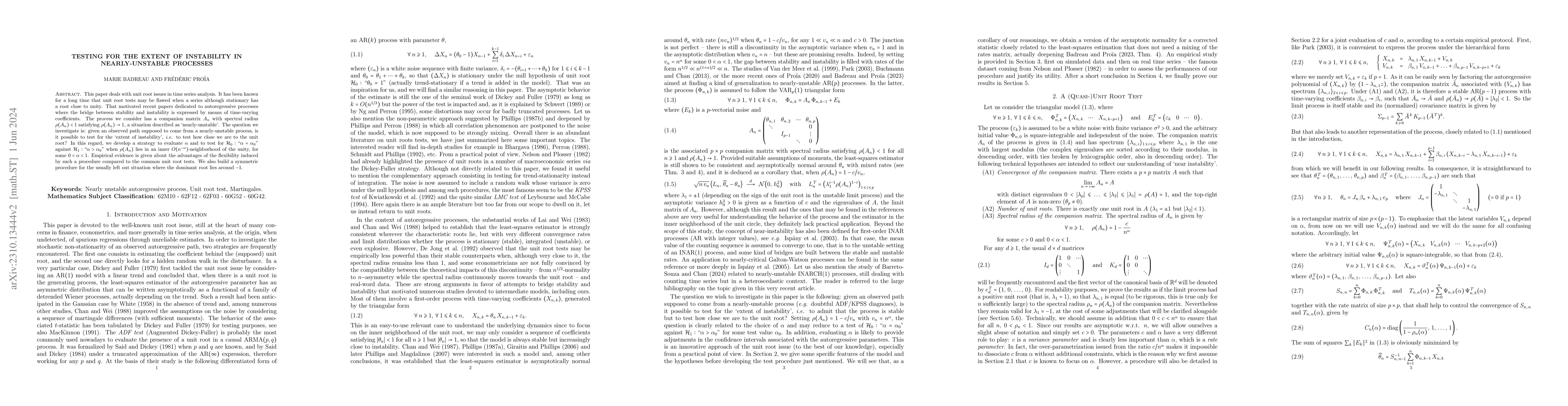 This paper develops a novel test for determining the "extent of instability" in nearly unstable time series processes, focusing on autoregressive models with coefficients close to unity. It proposes a strategy to assess how close a series is to a unit root, providing empirical evidence for its advantages over traditional unit root tests.