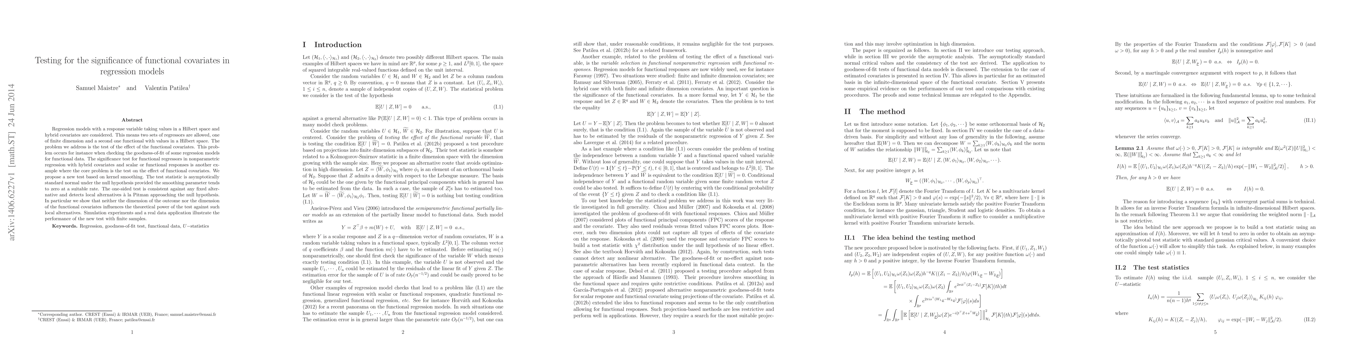This paper proposes a new test for the significance of functional covariates in regression models with hybrid covariates, using kernel smoothing. The test is shown to be asymptotically standard normal and consistent, unaffected by the dimensions of the covariates or response.