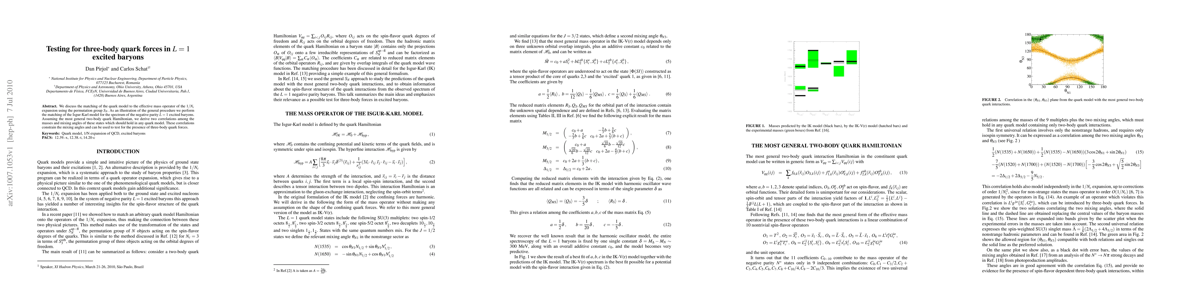 We discuss the matching of the quark model to the effective mass operator of the 1/Nc expansion using the permutation group S_N. As an illustration of the general procedure we perform the matching of the Isgur-Karl model for the spectrum of the negative parity L=1 excited baryons. Assuming the most general two-body quark Hamiltonian, we derive two correlations among the masses and mixing angles of these states which should hold in any quark model. These correlations constrain the mixing angles and can be used to test for the presence of three-body quark forces.