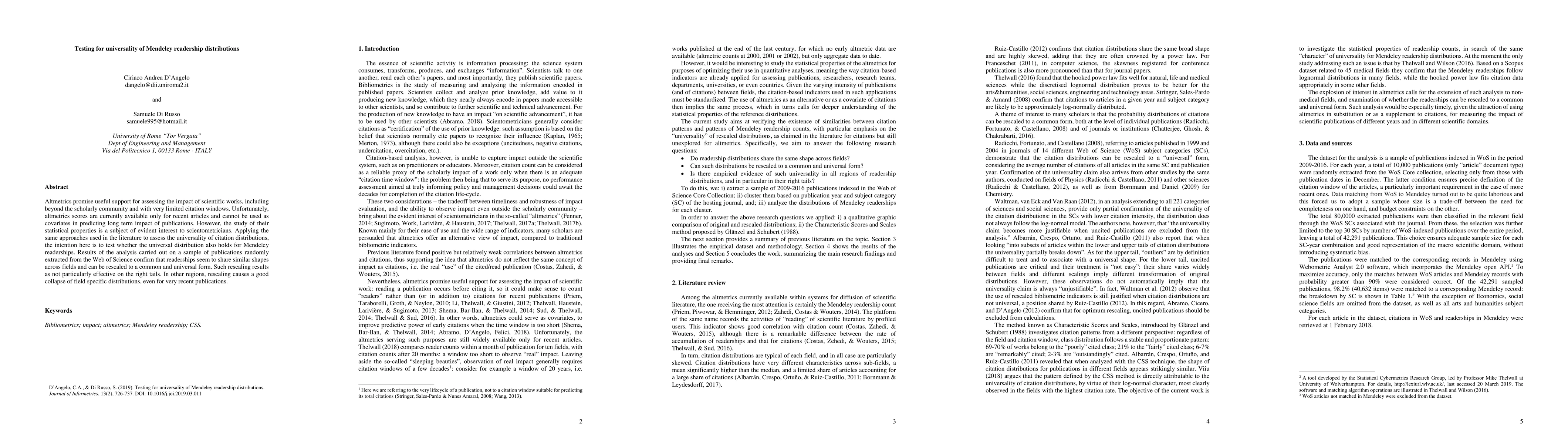This study investigates whether Mendeley readership distributions exhibit universality similar to citation distributions. Analysis of a sample from Web of Science shows that readership distributions across fields can be rescaled to a common form, indicating universality, though rescaling is less effective on the right tails.