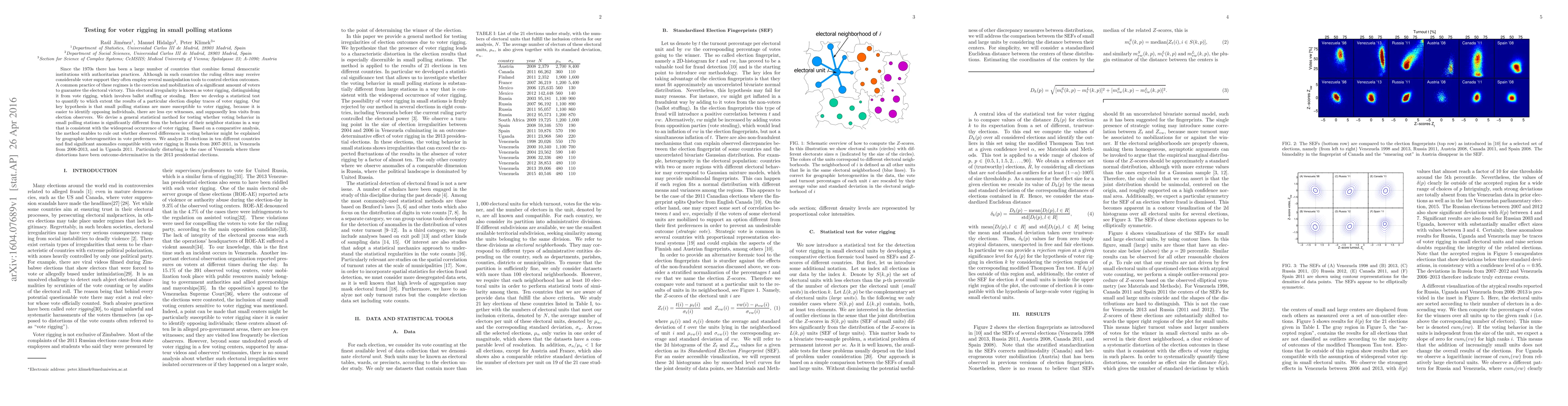 This paper develops a statistical test to detect voter rigging in small polling stations, hypothesizing that these stations are more susceptible due to easier identification of opposing voters and fewer observers. The method analyzes voting behavior across 21 elections in ten countries, finding significant anomalies in Russia, Venezuela, and Uganda, with Venezuela's 2013 presidential elections showing outcome-determinative distortions.